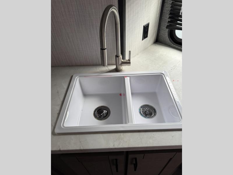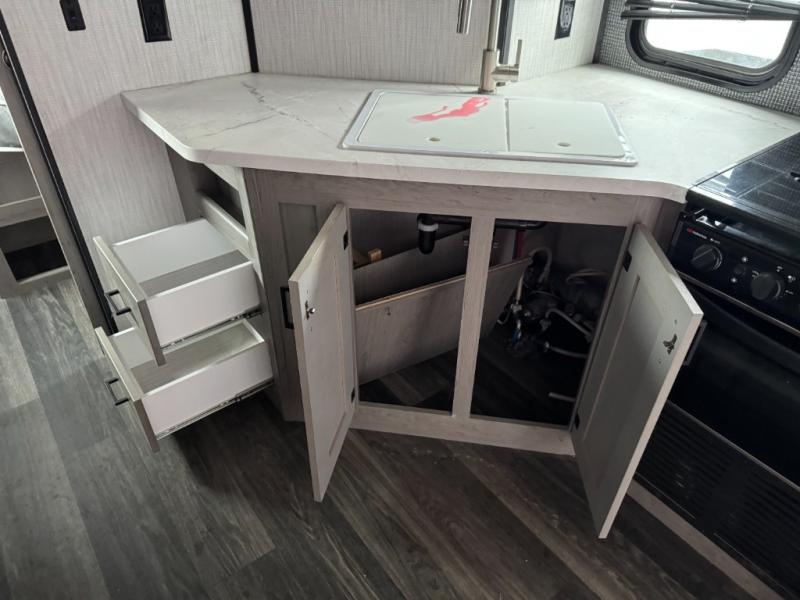 The Heartland Mallard travel trailer is quite impressive with its innovative features! The flip-down exterior steps and glow-in-the-dark graphics are some of the top exterior features, and the all-new Master Chef kitchen with Infinity edge countertops and stainless steel undermount sink is one of the top interior features that will make camping life easier. The forced-air heated and enclosed underbelly is a great feature that protects your trailer from the outside weather, and the Wide Traxx axle system, leaf spring suspension, E-Z lube hubs, and aluminum rims all work together to give you a great ride to the campsite. The Mallard has also been prepped for a solar panel, Wi-Fi, and a back-up camera, and it also has a cable-ready hook-up.