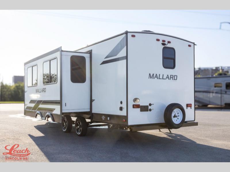 How would it sound to go camping in the great outdoors with plenty of inside comforts? This Mallard travel trailer gives you excellent interior comfort with the full rear bathroom that has lots of counter space for your toiletries and a large slide out in the living area that features a sofa and booth dinette where you can enjoy your meals, play a card game, or sleep. When you're ready to wind down your night, you can either head into the front private bedroom to enjoy a good night's rest on the king bed or head outdoors underneath the 17' power awning with LED lighting to visit with others RVers.