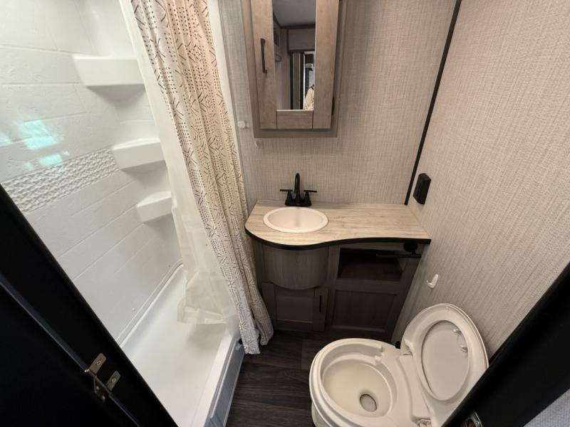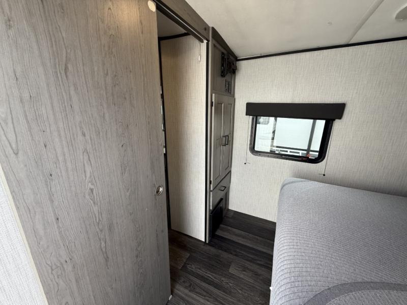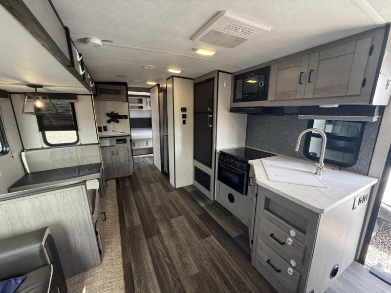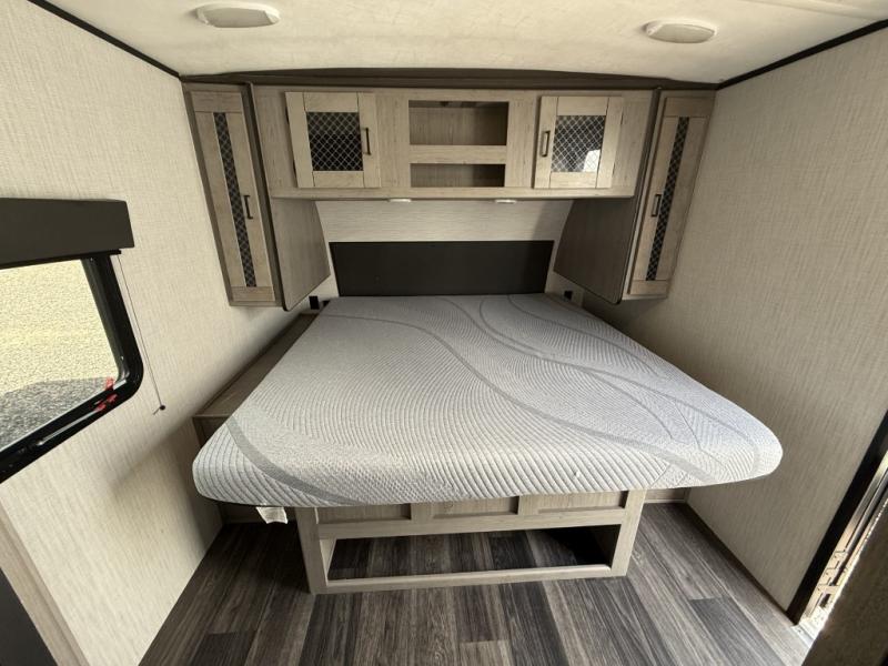 You won't ever want to leave the campground once you start camping in this dual-entry Mallard travel trailer! There is plenty of seating for everyone between the rear set of lounge chairs and the sofa next to the booth dinette, both of which can transform into extra sleeping space when needed. You will have no problem whipping up your favorite meals inside the complete kitchen, and the 8-cu. ft. double-door refrigerator is big enough to keep all of your perishables cold and fresh. What better way to wind down your night than to take a nice, hot shower in the full bathroom before heading into the front private bedroom to enjoy a good night's rest on the king bed.