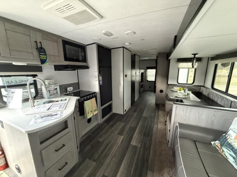 The Heartland Mallard travel trailer is quite impressive with its innovative features! The flip-down exterior steps and glow-in-the-dark graphics are some of the top exterior features, and the all-new Master Chef kitchen with Infinity edge countertops and stainless steel undermount sink is one of the top interior features that will make camping life easier. The forced-air heated and enclosed underbelly is a great feature that protects your trailer from the outside weather, and the Wide Traxx axle system, leaf spring suspension, E-Z lube hubs, and aluminum rims all work together to give you a great ride to the campsite. The Mallard has also been prepped for a solar panel, Wi-Fi, and a back-up camera, and it also has a cable-ready hook-up.