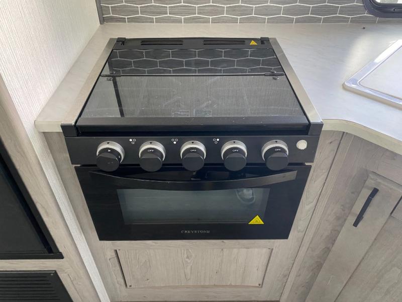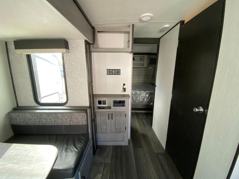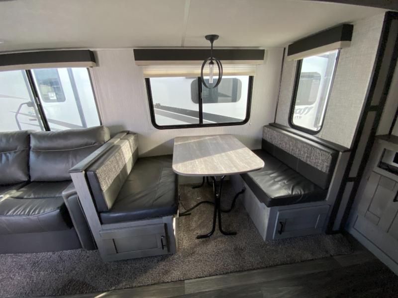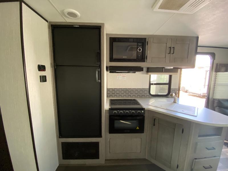 You won't ever want to leave the campground once you start camping in this dual-entry Mallard travel trailer! There is plenty of seating for everyone between the rear set of lounge chairs and the sofa next to the booth dinette, both of which can transform into extra sleeping space when needed. You will have no problem whipping up your favorite meals inside the complete kitchen, and the 8-cu. ft. double-door refrigerator is big enough to keep all of your perishables cold and fresh. What better way to wind down your night than to take a nice, hot shower in the full bathroom before heading into the front private bedroom to enjoy a good night's rest on the king bed.