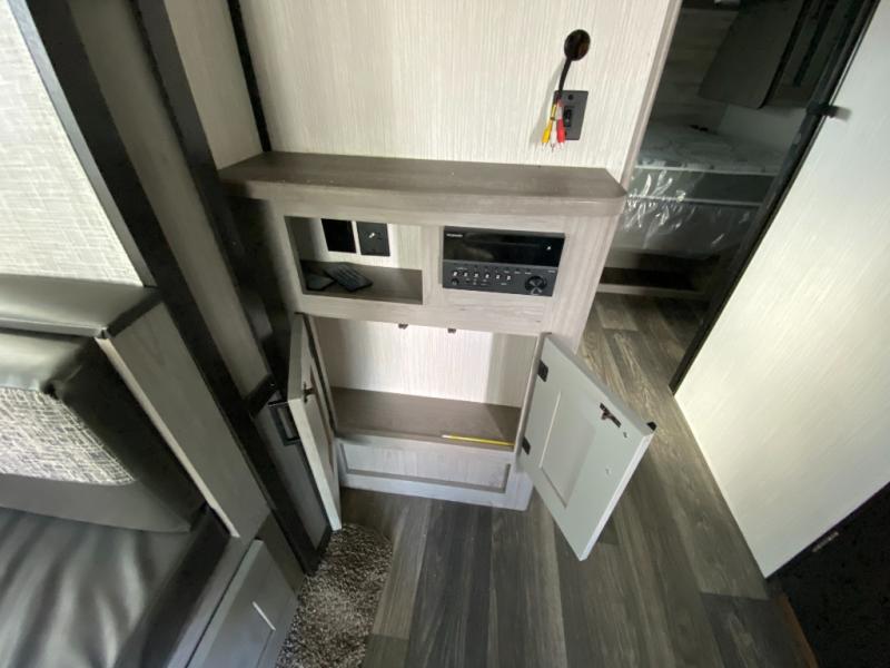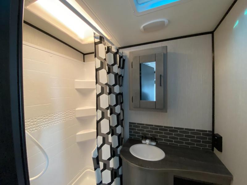 The Heartland Mallard travel trailer is quite impressive with its innovative features! The flip-down exterior steps and glow-in-the-dark graphics are some of the top exterior features, and the all-new Master Chef kitchen with Infinity edge countertops and stainless steel undermount sink is one of the top interior features that will make camping life easier. The forced-air heated and enclosed underbelly is a great feature that protects your trailer from the outside weather, and the Wide Traxx axle system, leaf spring suspension, E-Z lube hubs, and aluminum rims all work together to give you a great ride to the campsite. The Mallard has also been prepped for a solar panel, Wi-Fi, and a back-up camera, and it also has a cable-ready hook-up.