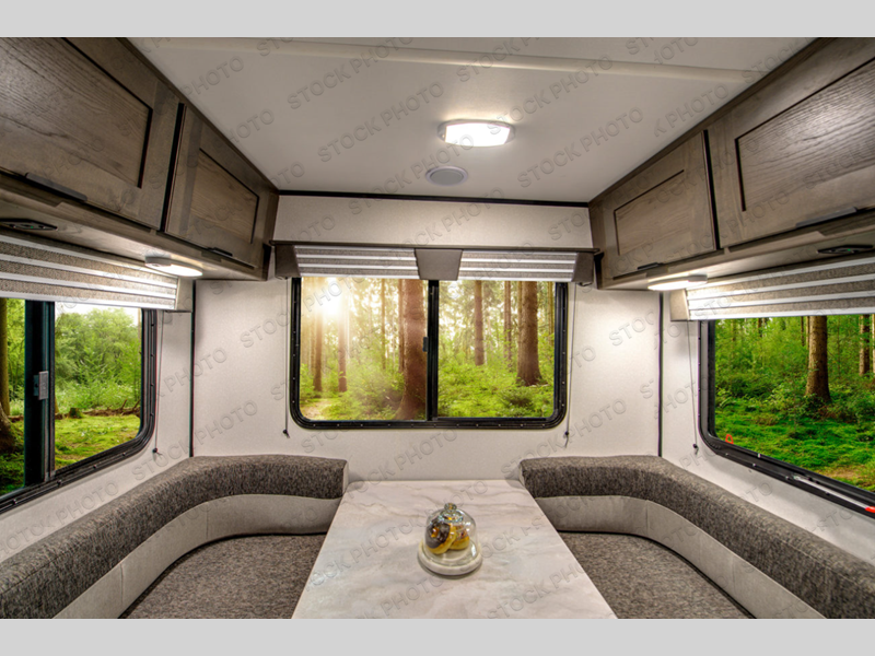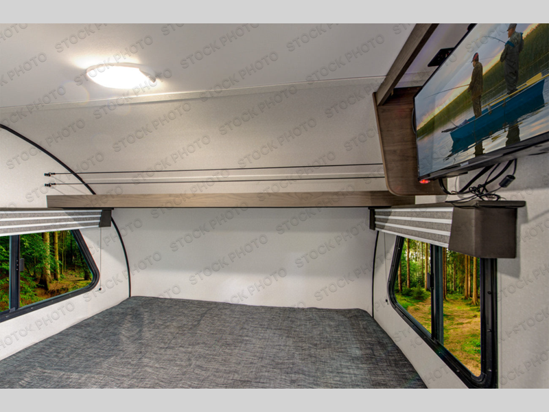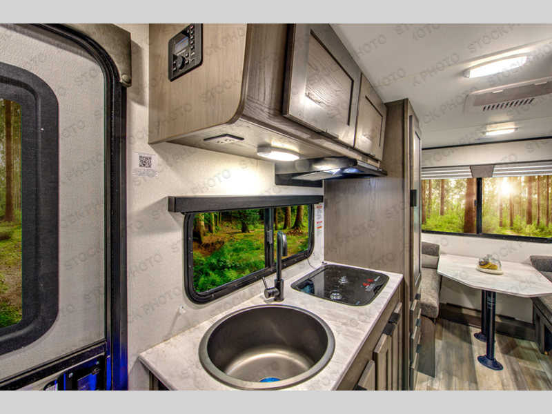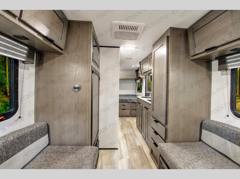 You can escape to your favorite destination with your favorite person in this travel trailer! The front queen bed offers a comfortable place to lay your head each night and has drawers underneath for your camping essentials. Freshen up in the full bathroom with the shower/tub surround that has a skylight above to bring the outdoors inside. Grab your pancake mix from the pantry/wardrobe and cook them up on the two burner cooktop to be enjoyed at the rear booth dinette which can also transform into an extra sleeping space if another guest wants to tag along for the fun!