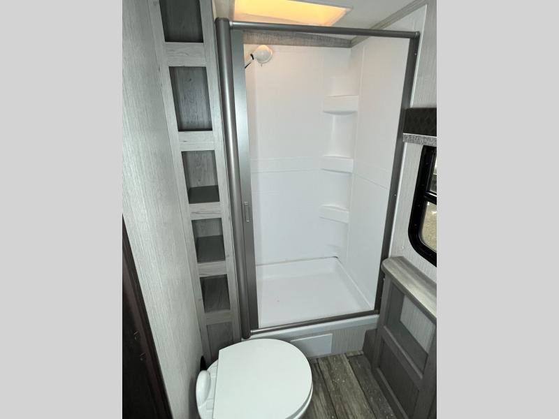 With any North Trail travel trailer by Heartland you will enjoy open living spaces and comfortable at-home features. Inside, you will find a high rise kitchen faucet, infinity edge countertops, upgraded and overstuffed residential furniture, plus residential interior doors to make you feel right at home. Each unit is constructed with Azdel fortified sidewalls with "stay cool technology", a heated and enclosed underbelly, and a fully walkable roof to easily clean the top of your unit after a week at the campground. Outside, you'll find four stabilizer jacks for easy set-up, E-Z lube hubs, slam latch baggage doors, plus an outside shower to wash off sand from the lake. These travel trailers include many convenient features, including a 30,000 BTU furnace, a gas/electric DSI water heater, a dual ducted A/C system, plus many options you can choose from to maximize your camping experience.