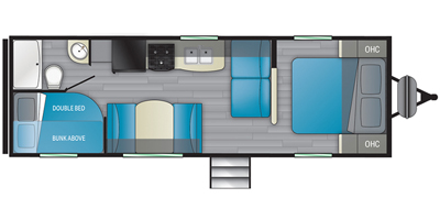 You won't want to camp any other way once you step inside this travel trailer! The front private bedroom has a queen bed to lay your head on at night. The kiddos will love sleeping on the double bunk beds, and the sofa and booth dinette can transform into extra sleeping spaces for a couple more guests to tag along. Your bellies will stay full with the three burner cooktop and you will stay clean with the shower in the full bathroom!