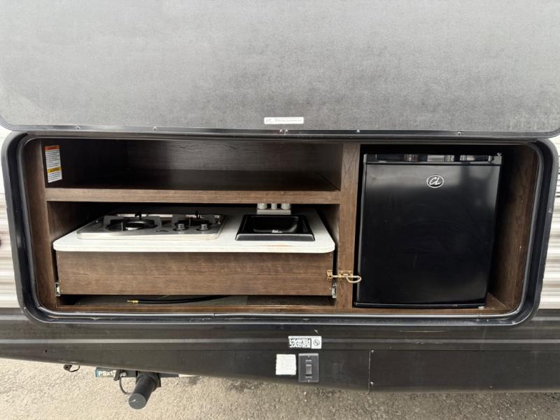 Wouldn't it be nice to wake up in your own private bedroom at your favorite campsite with your kids sleeping in their own private bunkhouse in the back? This Pioneer travel trailer lets you live that dream! Spend your mornings outside in the fresh air preparing breakfast at the outdoor kitchen while your kids ride around on their bikes, and if you do need to spend the day inside getting some work done, the U-shaped dinette will be the perfect place to do so. You won't feel cramped while you get dinner ready on the indoor three-burner range because the large slide will add extra space to this area.