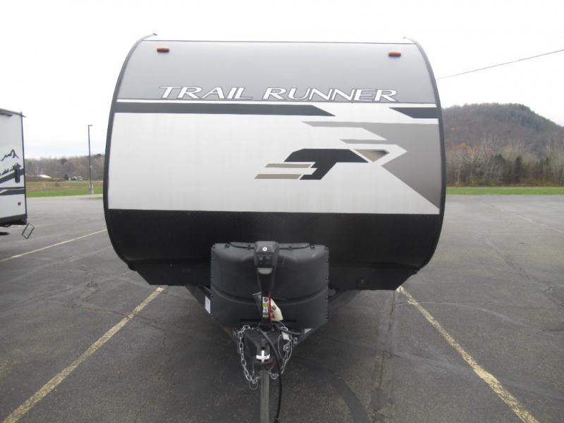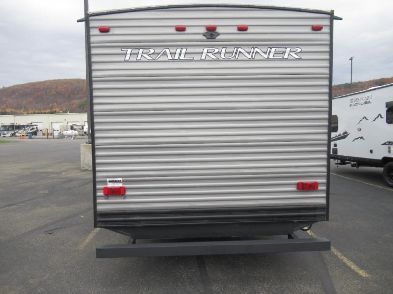 Ready, set, let's camp! Come select this Trail Runner travel trailer for your next camping trip. This trailer features sleeping space for eight people. In the back of this trailer is a set of double-size bunks, and both the booth dinette and the sofa convert into sleeping space. Also, in the front bedroom there is a queen bed. You will enjoy the convenience of the full bathroom with a skylight, and outside you will find a 14' power awning which provides plenty of shade from the sun and helps to maximize your outdoor living space!