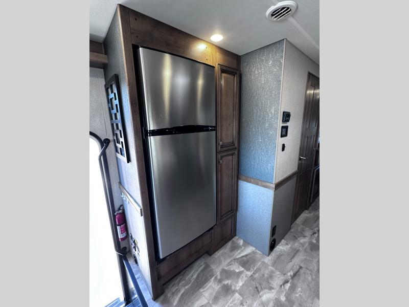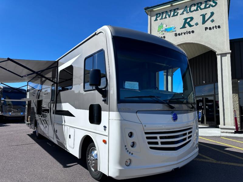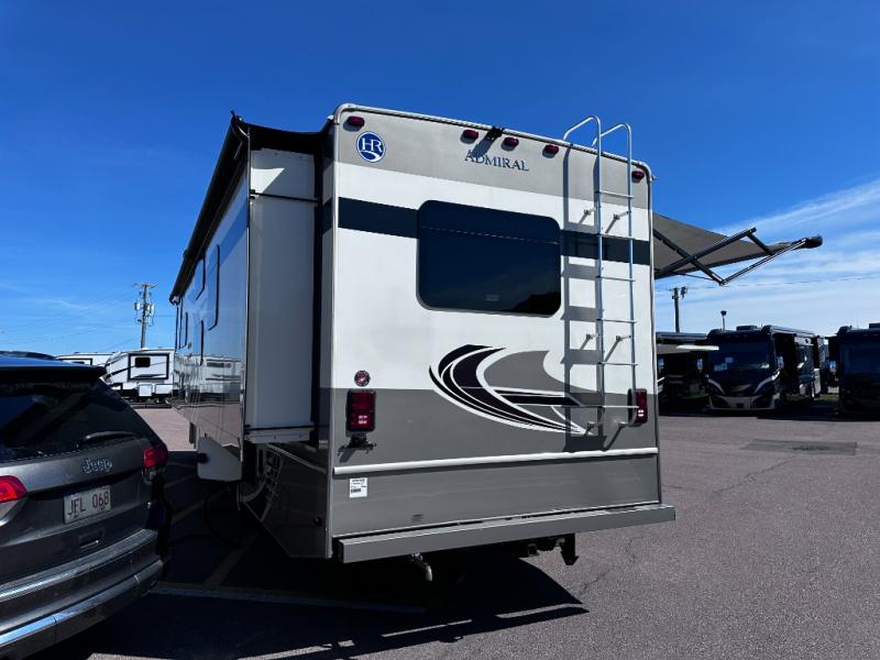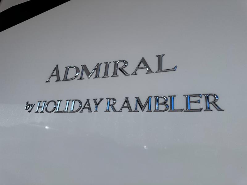 The Admiral Class A gas motorhome by Holiday Rambler is packed with family-friendly features and open living spaces so you can make the most of your vacations. Each model features a 7.3L Triton V8, 350 HP engine with an 8,000 lb. hitch capacity to bring along the family car. These motorhomes are constructed with quality materials, such as Vacu-Bond walls and ceilings with a Powerlock System, aluminum welded interlocking frames, and a powder coated steel frame chassis. You will enjoy each driving experience with the electronic instrument panel, the standard traction control, and larger front and rear sway bars. Inside, you will feel right at home with stainless steel appliances and eye-catching kitchen backsplash, a residential faucet and glass shower door in the bath, plus solid wood, raised panel cabinet doors. The exterior includes many convenient features, such as an electric awning with LED lights, an exterior entertainment center with a 50" TV, and a basement pass-through storage for items big and small!