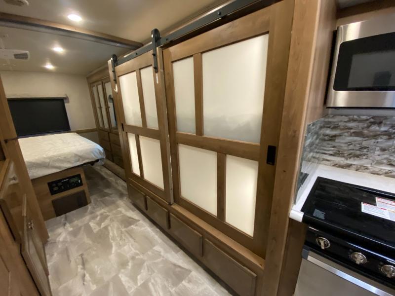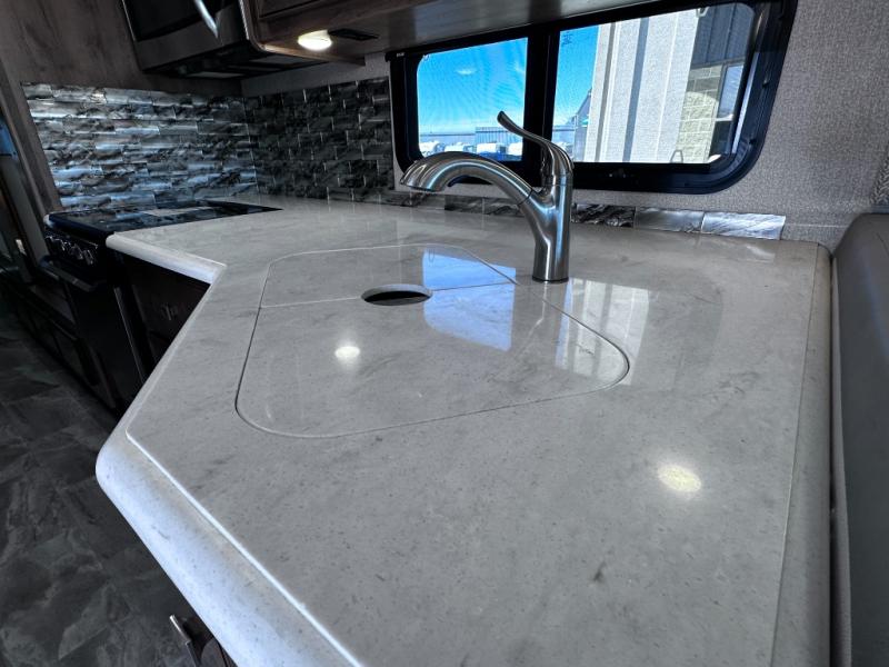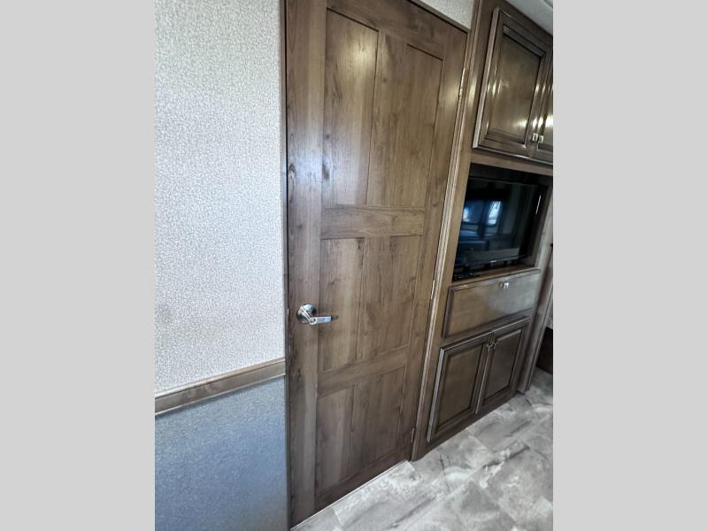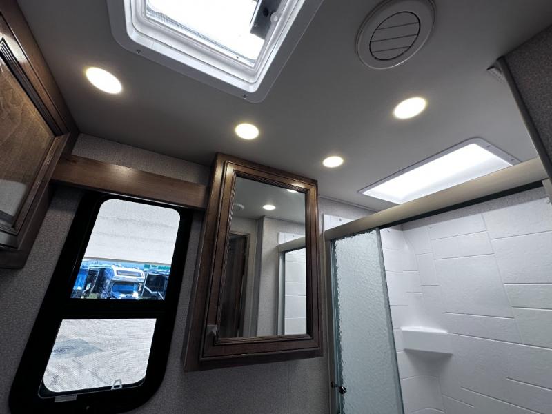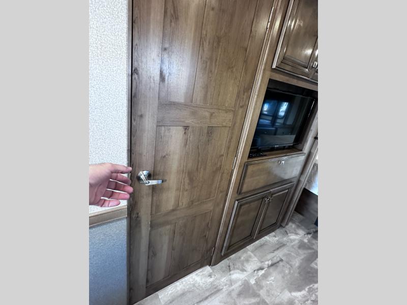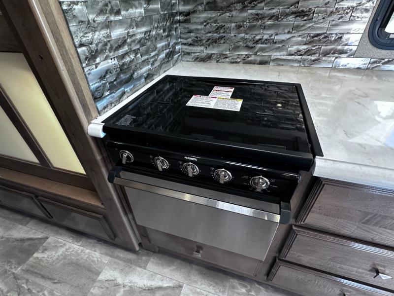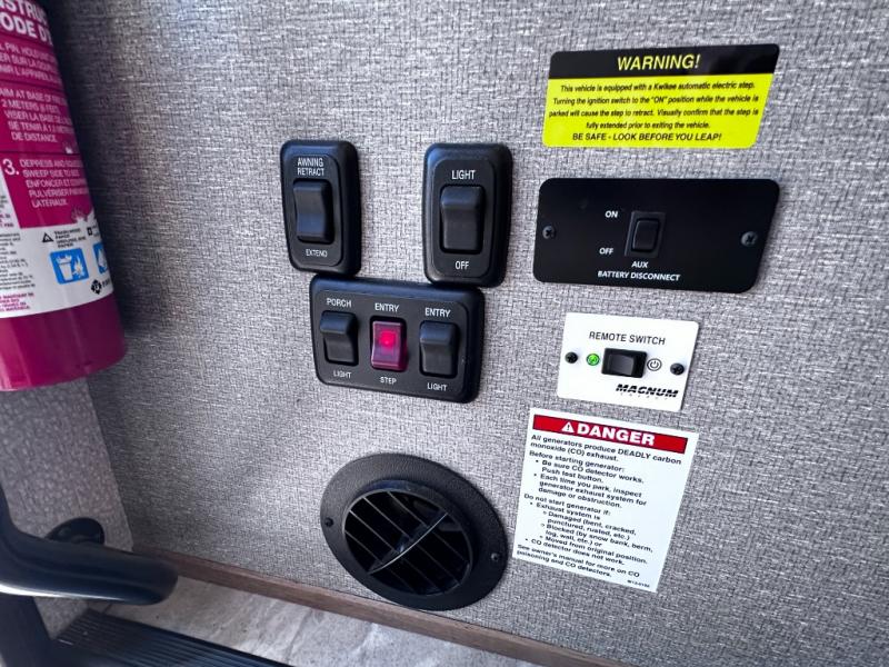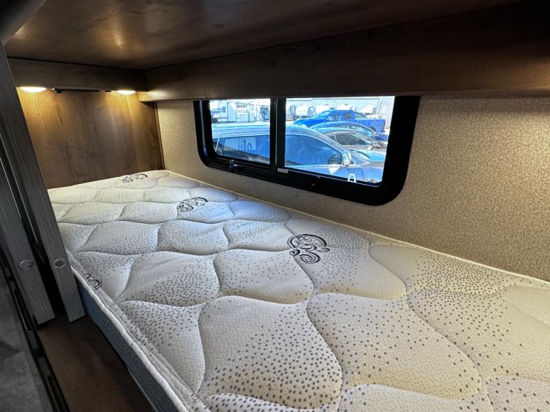 If you've been looking for a motorhome that can sleep all the grandkids, take a look at this unit with bunk beds, plus a Hide-a-Loft drop-down queen bed! There is even a 32" bunk TV so the kids can watch their morning cartoons. The full bath is conveniently located right across the bunks for nighttime restroom breaks, and the full-wall slide opens up the whole coach so no one will trip over the napping dog on the floor. Whether you're making a casserole in the oven, or heating up leftovers in the exterior microwave, you will easily be able to keep your crew fed and happy. Spending time outdoors will be enjoyable with the exterior entertainment center and the legged electric awning with LED lights!