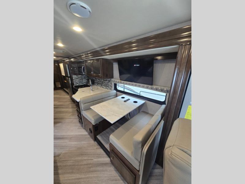 The fun and modern features that have been included in the Invicta Class A gas motorhome from Holiday Rambler will allow you to experience numerous adventures in confidence! You will find a high-tech cab area with a built-in HD radio and an Android Auto/Apple CarPlay system with navigation so that you can keep your eyes on the road while you make your way to the campsite. The Invicta also comes with a 100W solar panel which will power up the other technological conveniences, like the WiFi Ranger Sky4, the Smart TV, and the Multiplex wiring control system with 4.3" touchscreen panel. All of these amazing features are protected by aluminum welded interlocking frames and a powder-coated steel chassis construction that has full-coverage heavy-duty undercoating.