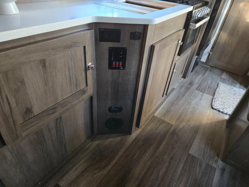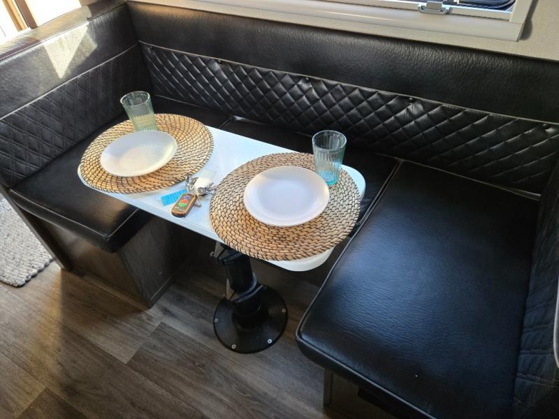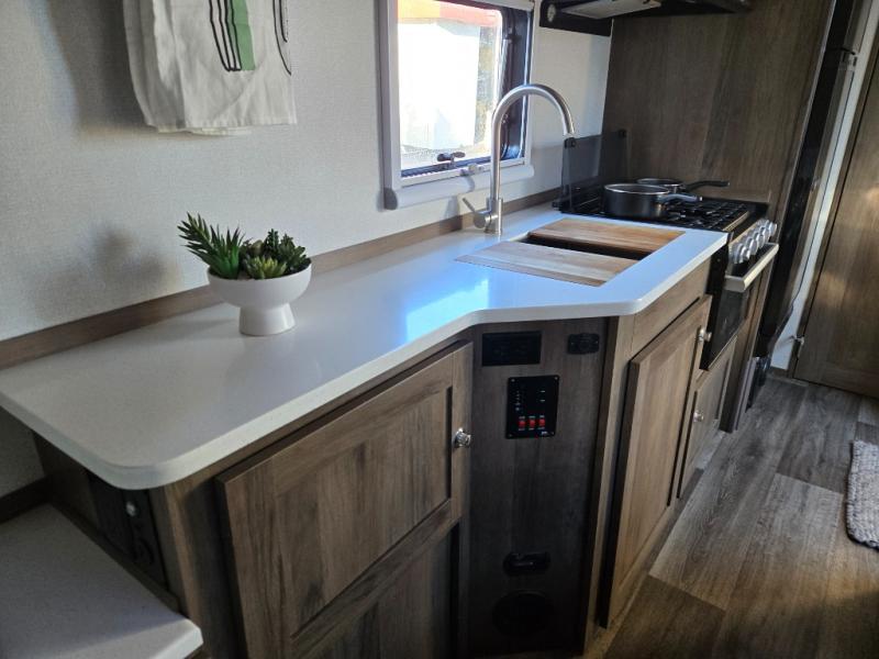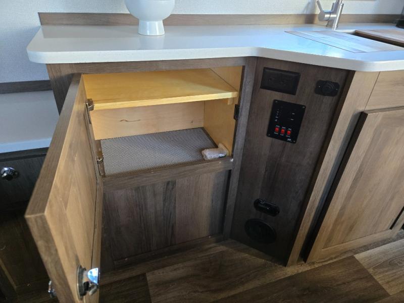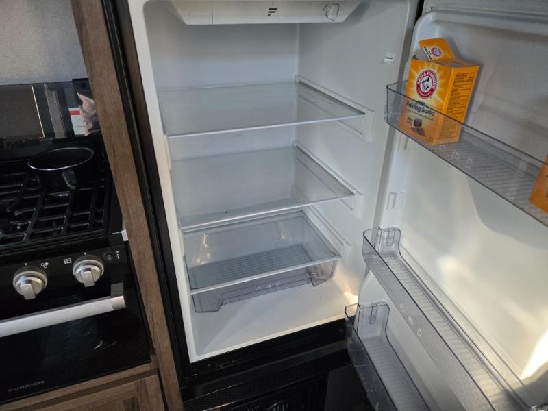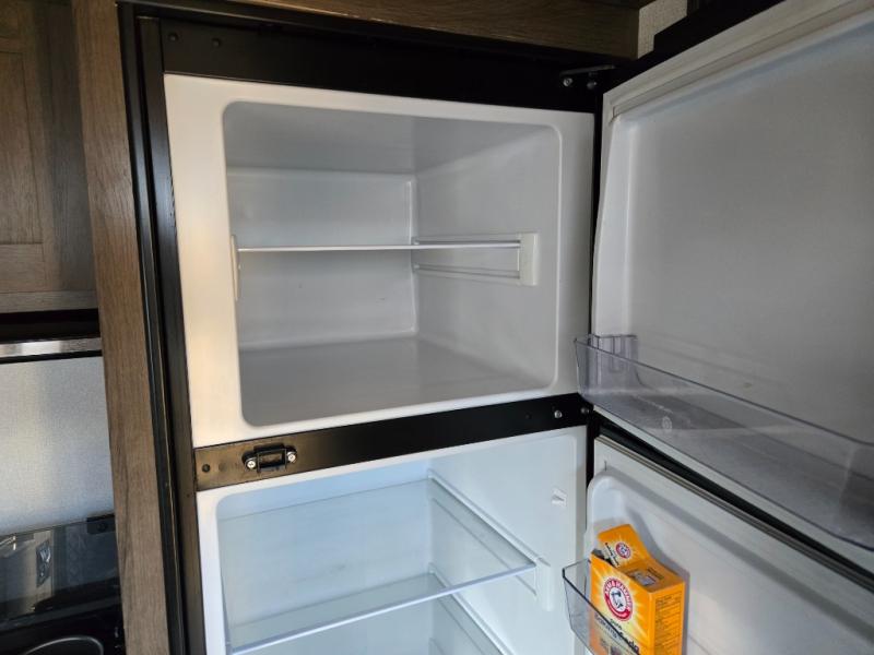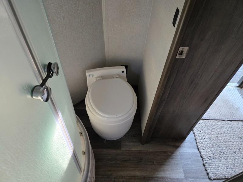 Head off-grid with this travel trailer! It features a full front bathroom with a radius shower to clean up in each morning and a dry flush toilet so you don't have to worry about a black water tank in the back country. Just outside the bathroom is a closet and a 10 cu. ft. refrigerator to keep your perishables fresh. After you have prepared a delicious meal on the three burner cooktop, you can head to the convertible booth dinette to enjoy it there then play a card game or two. The rear full bed is stationary and offers a comfortable nights rest!