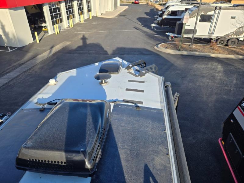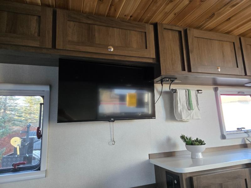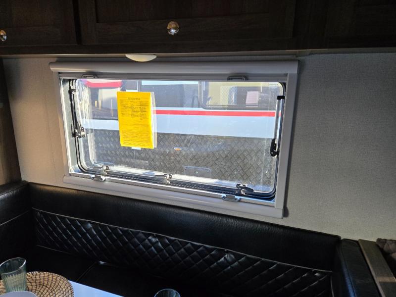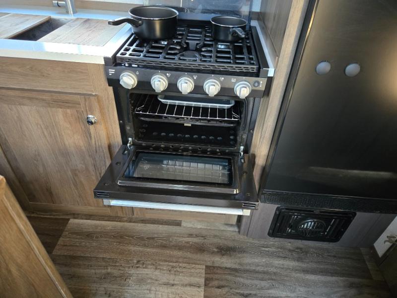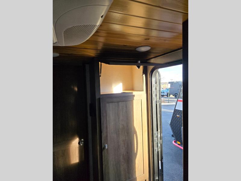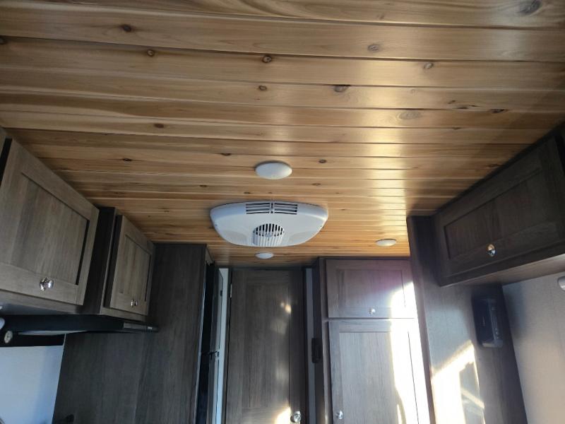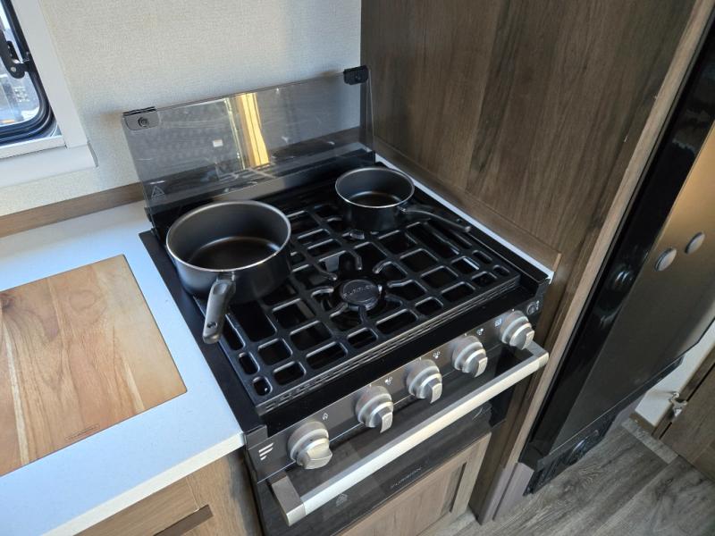 Head off-grid with this travel trailer! It features a full front bathroom with a radius shower to clean up in each morning and a dry flush toilet so you don't have to worry about a black water tank in the back country. Just outside the bathroom is a closet and a 10 cu. ft. refrigerator to keep your perishables fresh. After you have prepared a delicious meal on the three burner cooktop, you can head to the convertible booth dinette to enjoy it there then play a card game or two. The rear full bed is stationary and offers a comfortable nights rest!