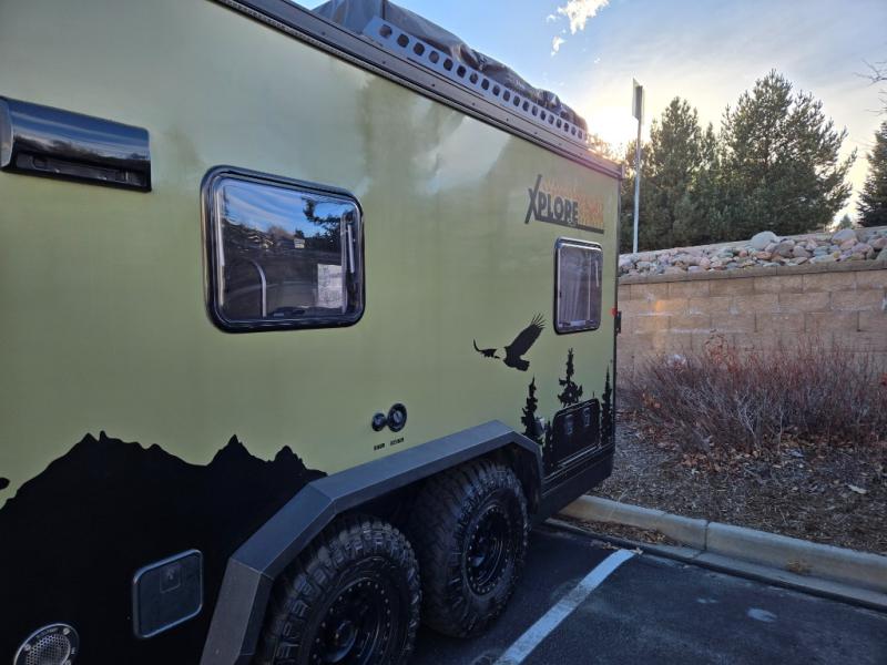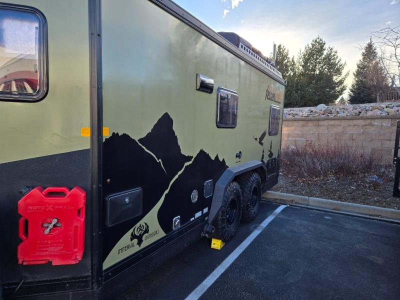 Imperial Outdoors has encompassed the cold weather versatility and cabin-style comforts of a fish house with the rugged capability of a true off-road camper in this XploreRV travel trailer! The chassis has been beefed up with an off-road reinforced, coated steel, and the hydraulic ride adjustment has a 12" ground clearance road height and a 20" off-road ground clearance height. In addition to the standard features and Xtreme package already provided, there are four other optional packages that can be added. The Xtreme package includes an outdoor shower, on-demand hot water, a lock and roll off-road hitch, and an on-board air compressor, plus more!