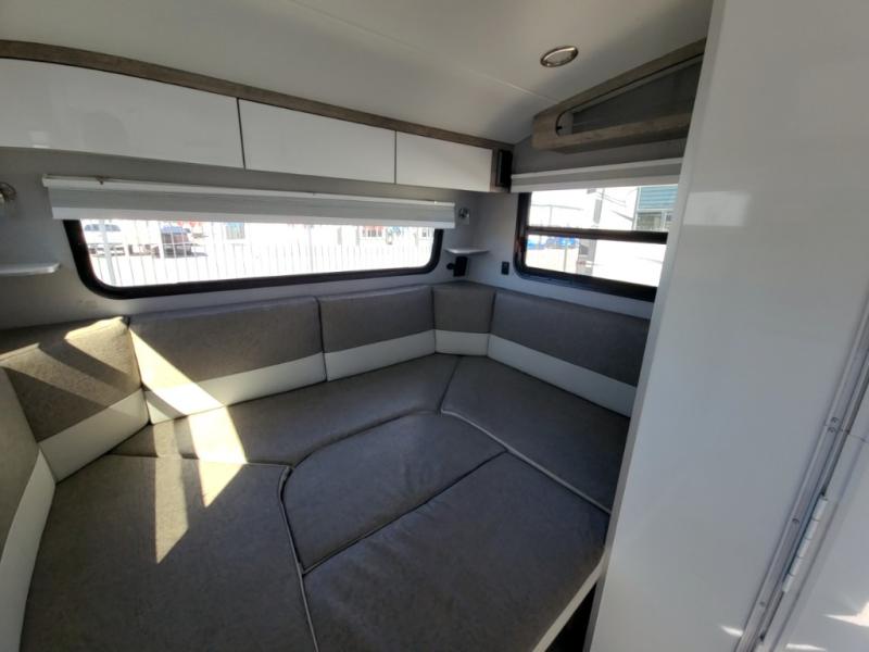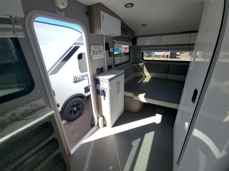 Make each adventure count with this Sol travel trailer. You and your loved one will have a convertible dinette to enjoy meals at and sleep on at night. In the morning, prepare eggs and bacon on the two burner stainless steel cooktop before heading out for the day. If you've chosen the optional 7' awning, you may not wander off too far from your trailer. This model also includes a wet bath with a porcelain toilet, a roof vent, plus a mesh shower storage net with two towel hooks for your convenience.