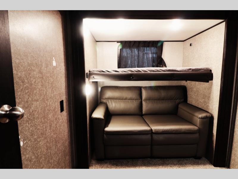 Families & multi-generational travelers: With the separate mid-room/loft, rear living area, multiple sleeping zones and ample storage, this floorplan is designed to accommodate multiple generations while still offering privacy and functionality.
