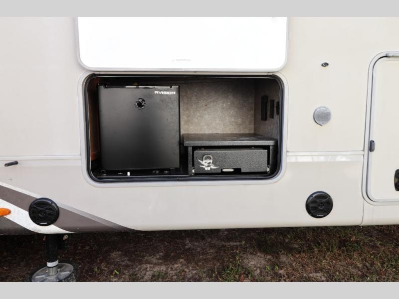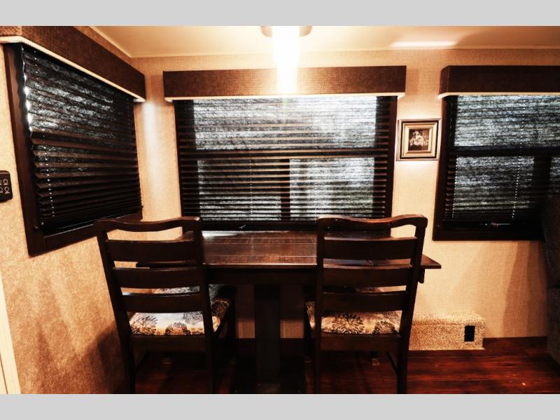Thoughtful interior design details: no floor vents (cleaner look & easier cleaning), residential vinyl flooring, blackout roller shades with reflective side, USB charging ports throughout.