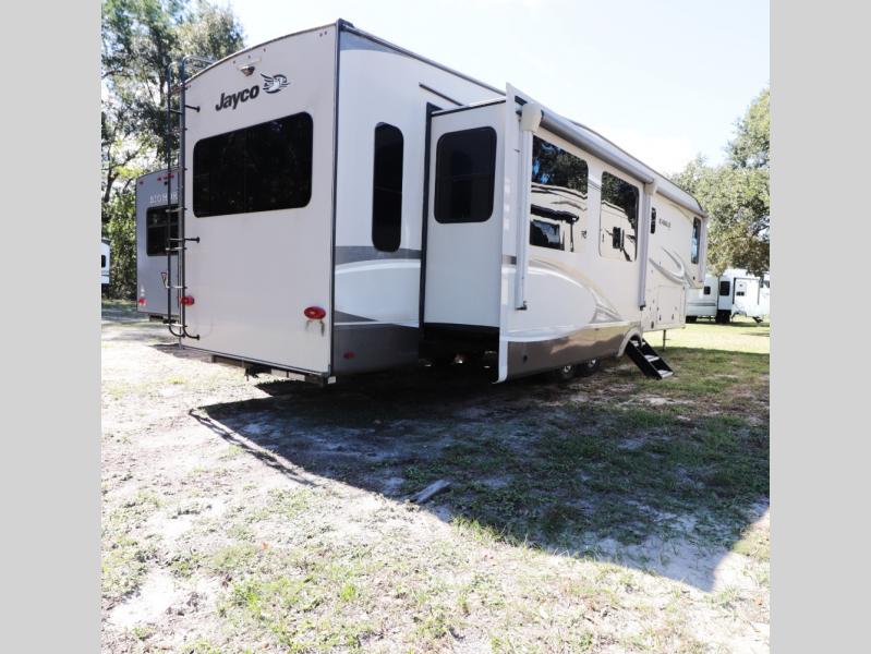 Discover the exceptional value on the gently-used 2021 Jayco Eagle 355MBQS – now available at Campers Inn RV of Ocala.