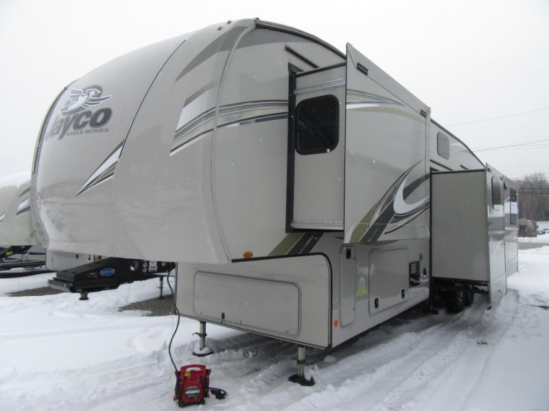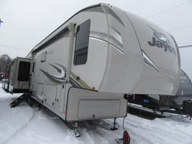Start having generations of family fun with any one of these Jayco Eagle travel trailers and fifth wheels! Jayco has taken the extra steps to build high quality products that have the most advanced construction techniques with the StrongholdVBL™ vacuum-bond lamination that is the lightest yet strongest construction available in the RV industry. The Magnum Truss Roof System is 50% stronger than other roofs in the industry and are built to outlast everything but your memories with top-quality materials and innovative manufacturing techniques. There are three mandatory packages in addition to the long list of standard features to make each and every trip as enjoyable as it can be. A few of these features include a patent-pending Drinking Water System™, an LED fireplace with 5,000 BTU electric space heater, MORryde® StepAbove™ entrance steps with blue LED light, and an observation camera prep on the rear and sides. With Goodyear® Endurance® tires made in the U.S.A, Dexter® axles with Nev-R-Adjust® brakes and E-Z Lube® hubs, and a MORryde® CRE--3000™ rubberized suspension, you will experience a smooth ride. Don't wait any longer, come choose your favorite one today!