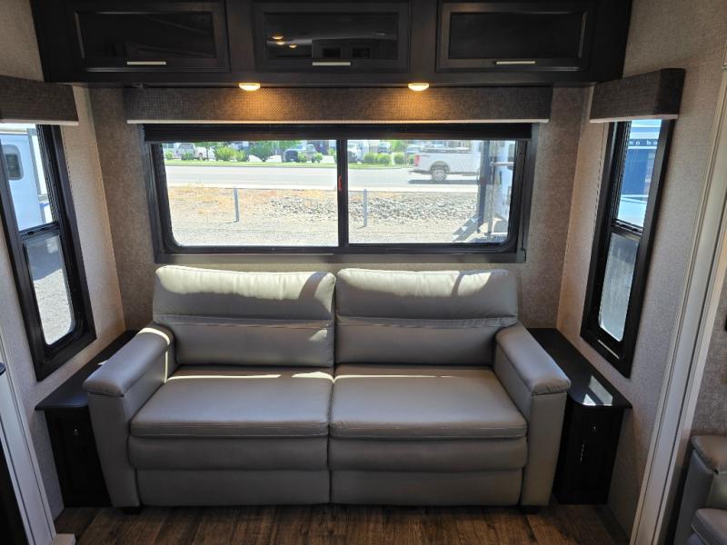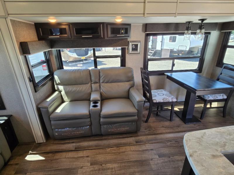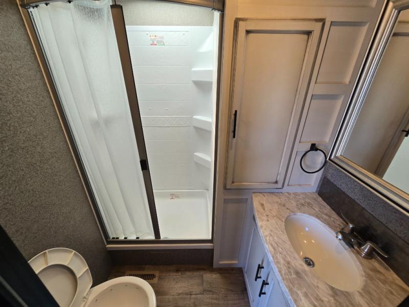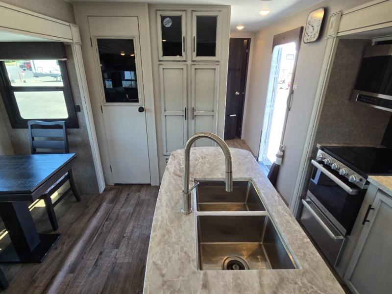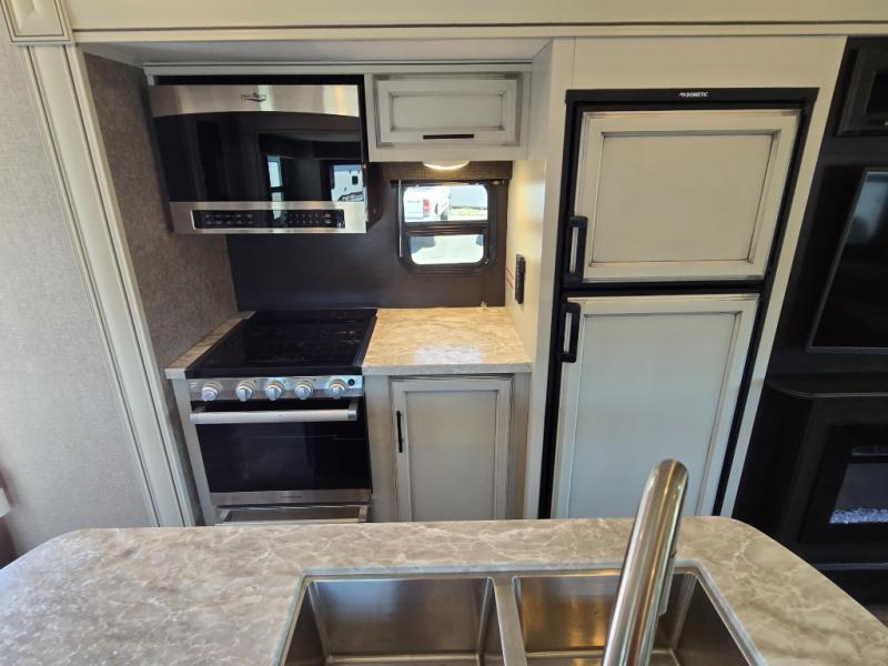 With each Jayco Eagle HT fifth wheel or travel trailer, you will enjoy all-season camping with the Climate Shield zero-degree tested weather protection that includes a fully enclosed and heated underbelly. The industry-exclusive HELIX Cooling System with a 15,000 BTU "Whisper Quiet" A/C system provides a quieter and more efficient system for your comfort. These models include the JAYCOMMAND Smart RV system powered by BMPRO which allows you to control your unit's functions right from your smartphone or tablet. Inside, you will enjoy the residential queen Serta mattress with under-bed storage, the bathroom skylight to allow natural light in, the stainless steel kitchen sink, and dual USB charging ports in the kitchen and bedroom so that you can keep your gadgets charged and ready to go.