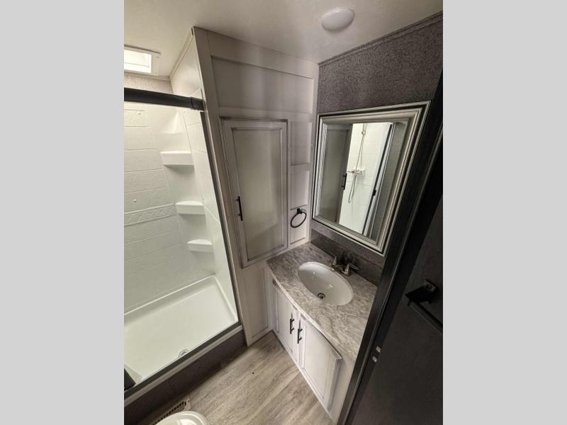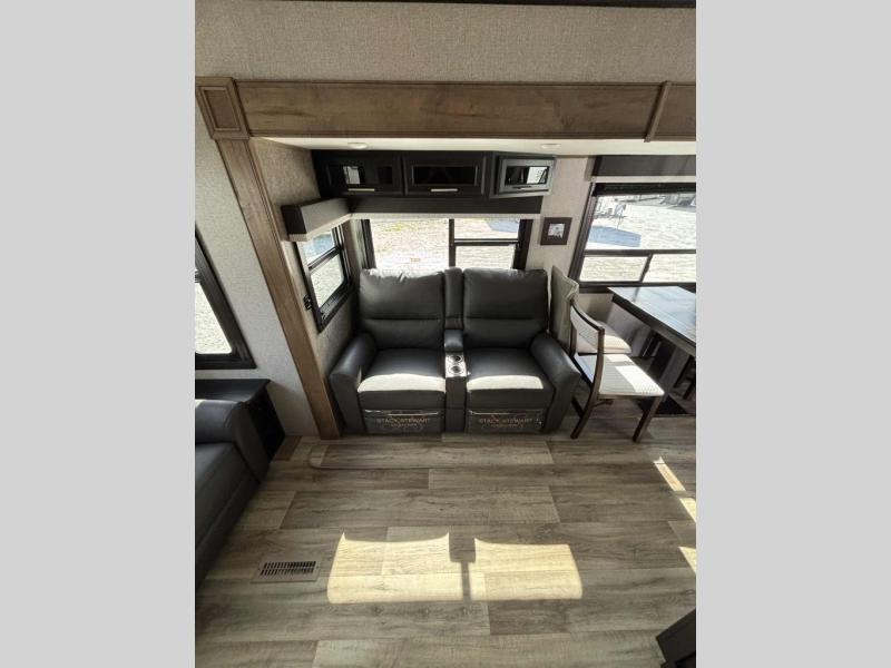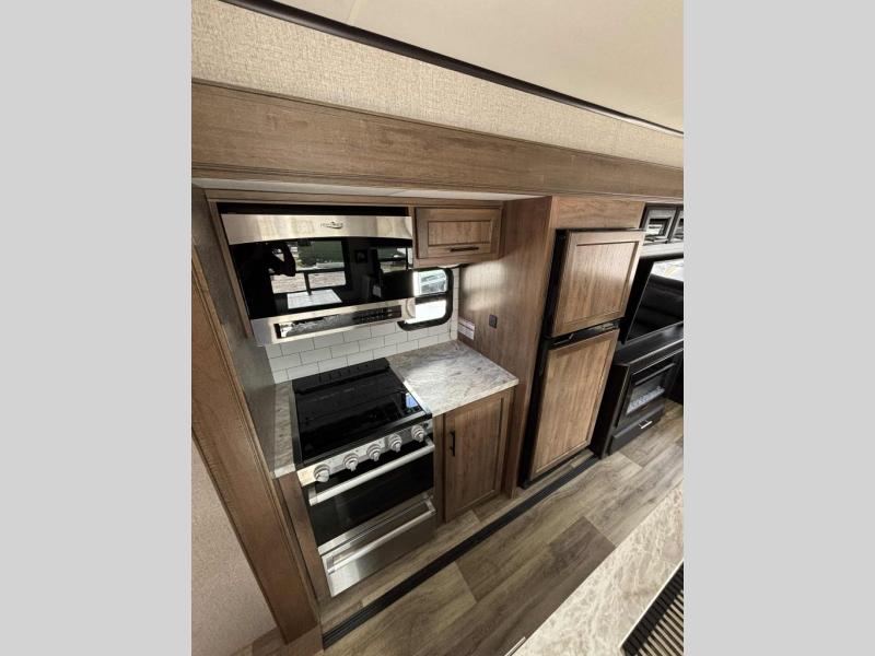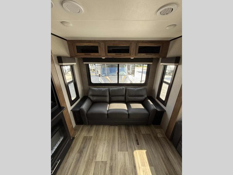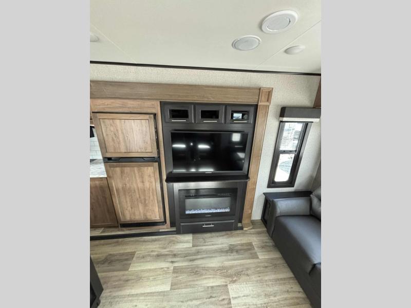 With each Jayco Eagle HT fifth wheel or travel trailer, you will enjoy all-season camping with the Climate Shield zero-degree tested weather protection that includes a fully enclosed and heated underbelly. The industry-exclusive HELIX Cooling System with a 15,000 BTU "Whisper Quiet" A/C system provides a quieter and more efficient system for your comfort. These models include the JAYCOMMAND Smart RV system powered by BMPRO which allows you to control your unit's functions right from your smartphone or tablet. Inside, you will enjoy the residential queen Serta mattress with under-bed storage, the bathroom skylight to allow natural light in, the stainless steel kitchen sink, and dual USB charging ports in the kitchen and bedroom so that you can keep your gadgets charged and ready to go.