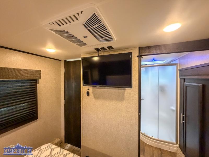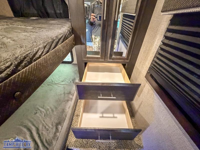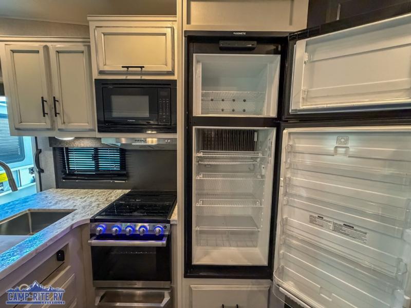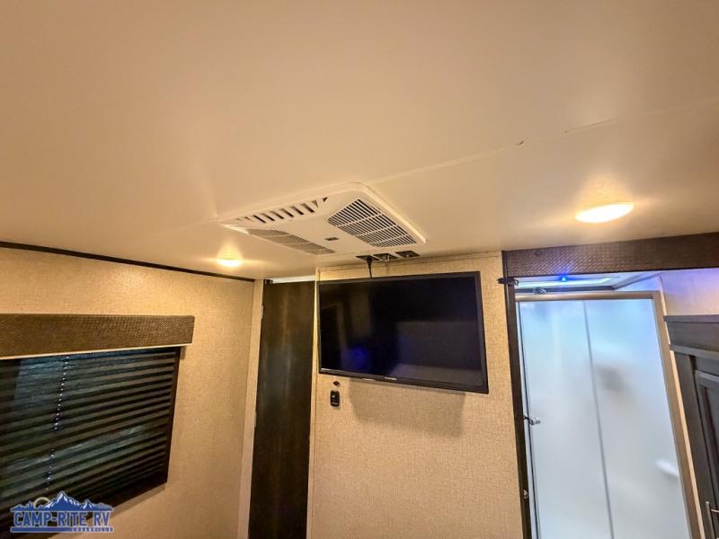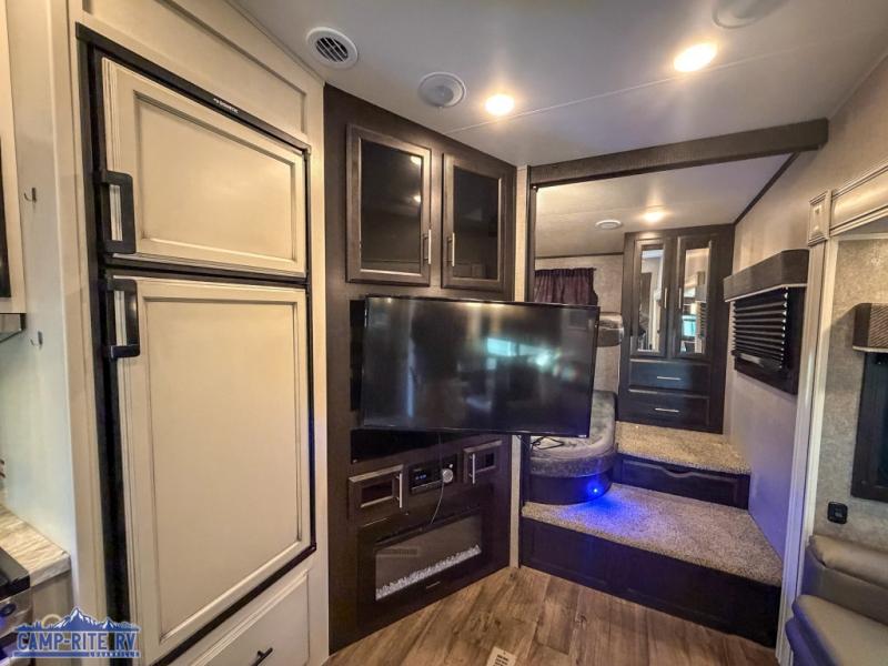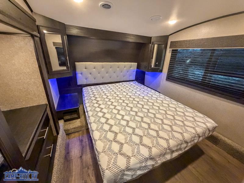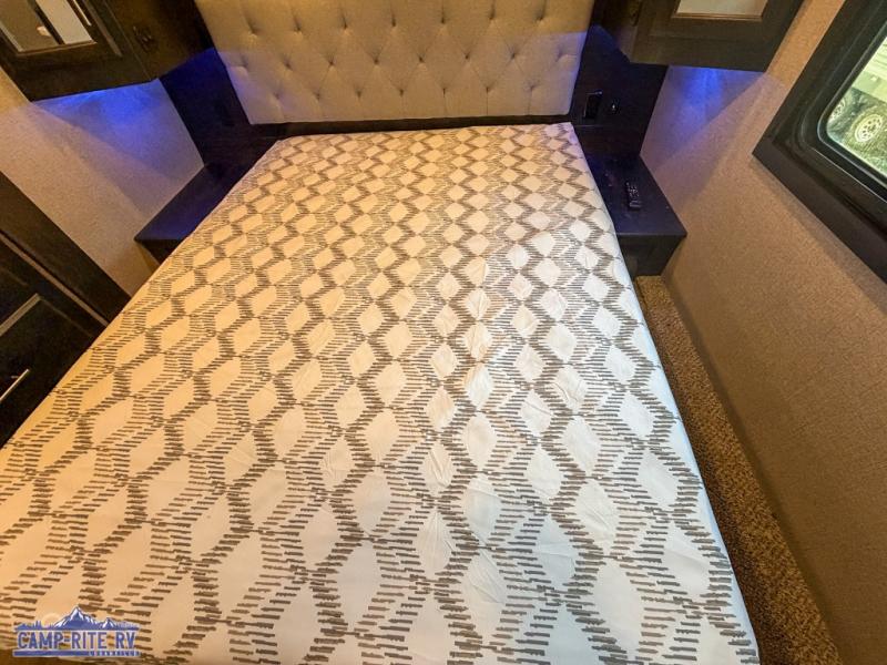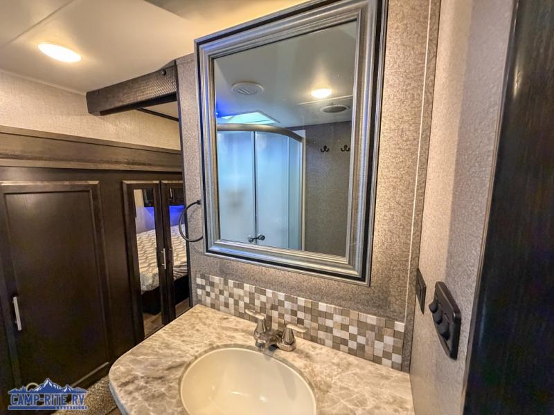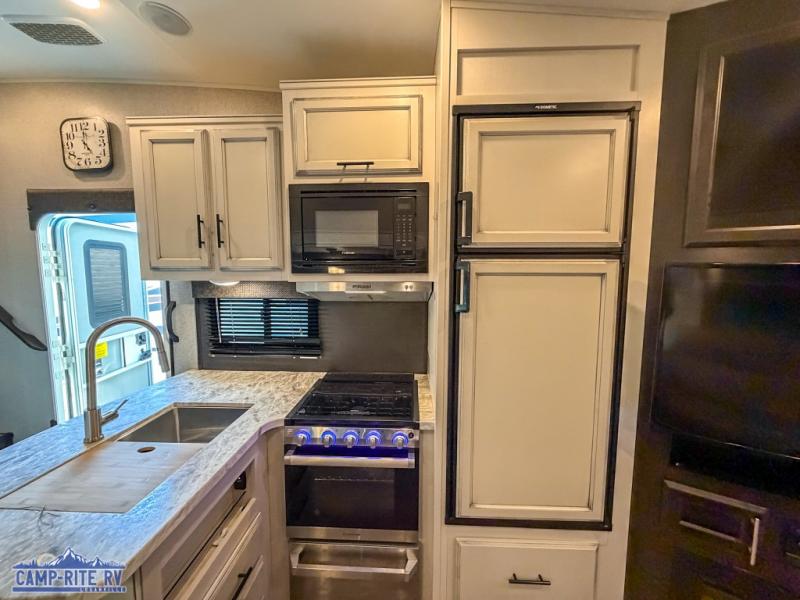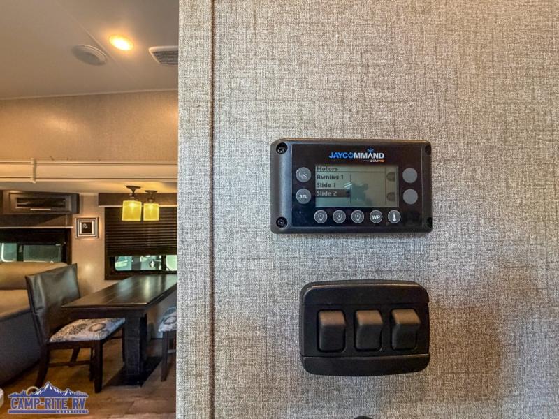 With each Jayco Eagle HT fifth wheel or travel trailer, you will enjoy all-season camping with the Climate Shield zero-degree tested weather protection that includes a fully enclosed and heated underbelly. The industry-exclusive HELIX Cooling System with a 15,000 BTU "Whisper Quiet" A/C system provides a quieter and more efficient system for your comfort. These models include the JAYCOMMAND Smart RV system powered by BMPRO which allows you to control your unit's functions right from your smartphone or tablet. Inside, you will enjoy the residential queen Serta mattress with under-bed storage, the bathroom skylight to allow natural light in, the stainless steel kitchen sink, and dual USB charging ports in the kitchen and bedroom so that you can keep your gadgets charged and ready to go.