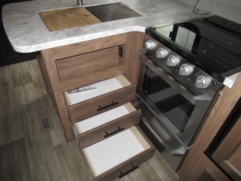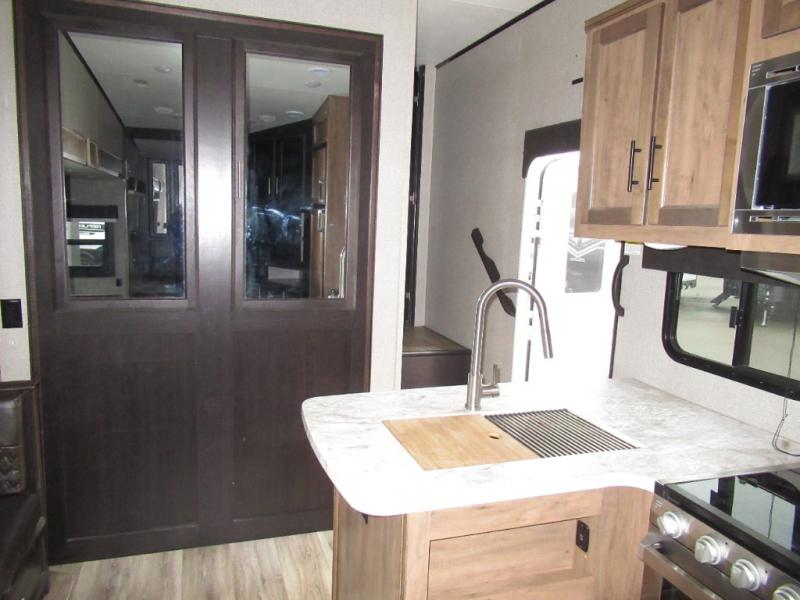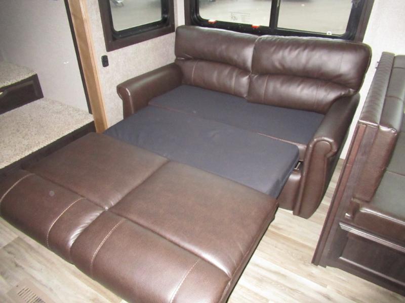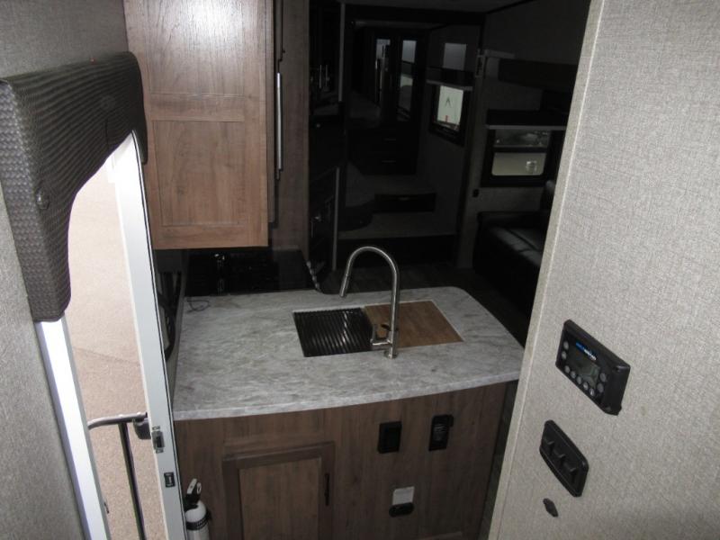 With each Jayco Eagle HT fifth wheel or travel trailer, you will enjoy all-season camping with the Climate Shield zero-degree tested weather protection that includes a fully enclosed and heated underbelly. The industry-exclusive HELIX Cooling System with a 15,000 BTU "Whisper Quiet" A/C system provides a quieter and more efficient system for your comfort. These models include the JAYCOMMAND Smart RV system powered by BMPRO which allows you to control your unit's functions right from your smartphone or tablet. Inside, you will enjoy the residential queen Serta mattress with under-bed storage, the bathroom skylight to allow natural light in, the stainless steel kitchen sink, and dual USB charging ports in the kitchen and bedroom so that you can keep your gadgets charged and ready to go.