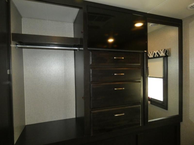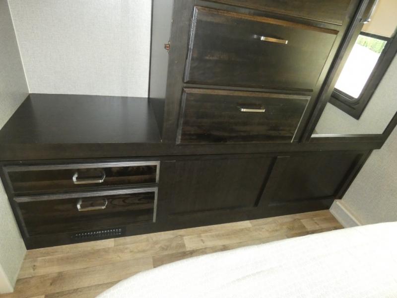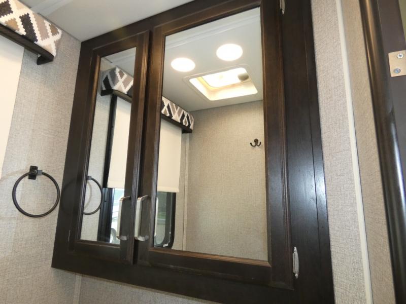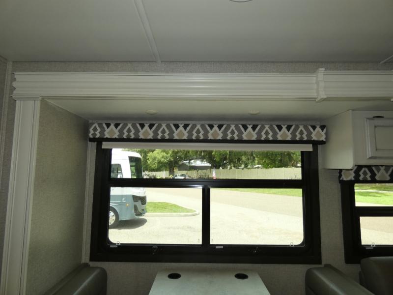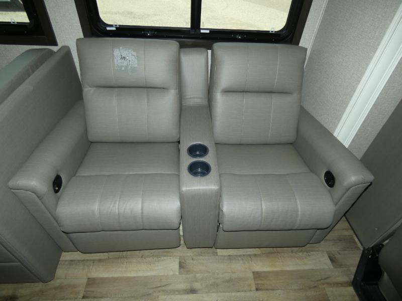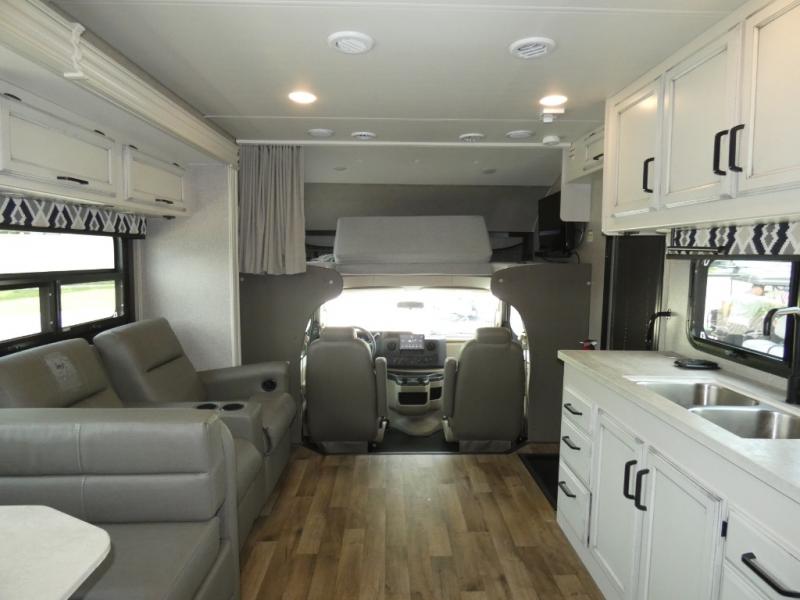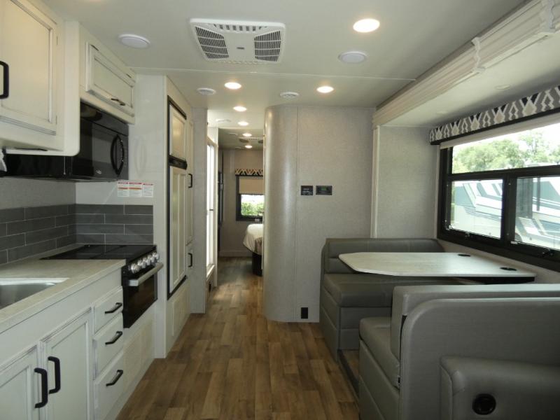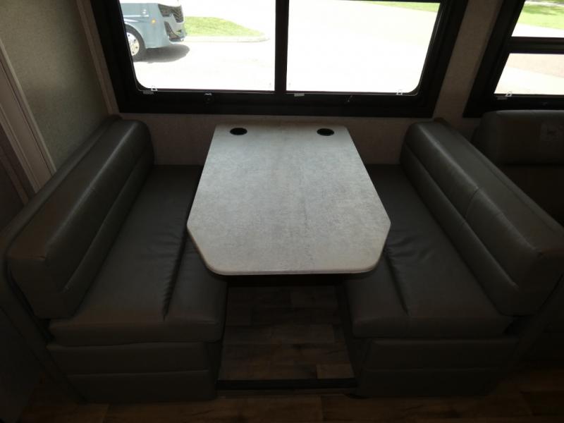 Pack your bags and head to the coast in this spacious motorhome. You'll find two slides throughout for added space, and a sleeping capacity of seven so the grandkids can come along. Relax on the theater seats or play a game at the booth dinette while the chef of the family prepares a meal. The residential-size microwave will be great for quick meals, and the Furrion all-in-one cooktop oven can be used for casseroles. This model includes an independent shower with a private toilet and sink right across the hall so two people can freshen up at once. You will feel right at home in the rear bedroom that includes a privacy curtain, a slide out queen bed, dual wardrobes, plus your own LED TV!