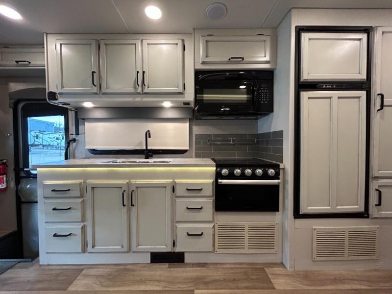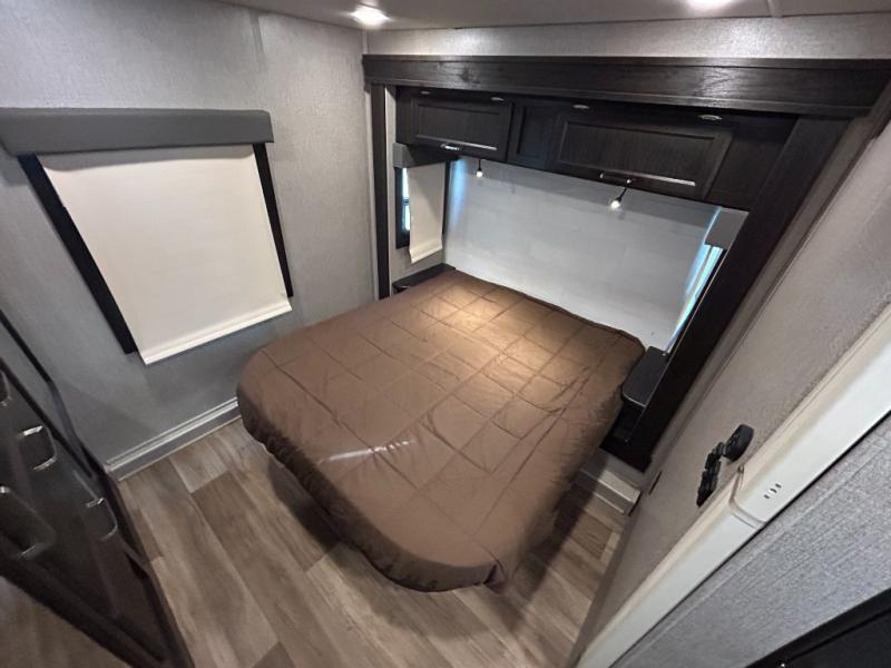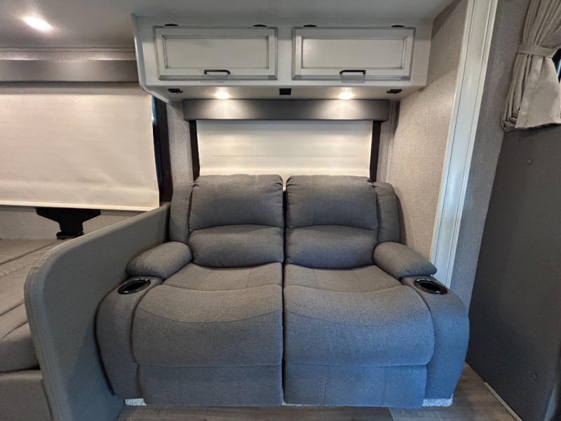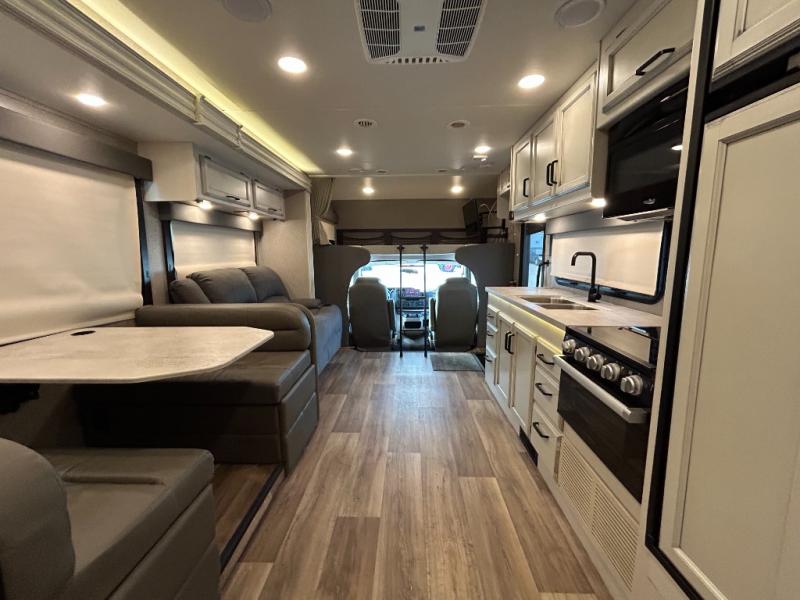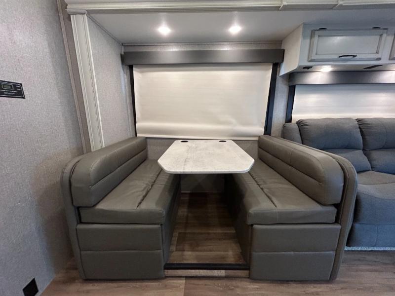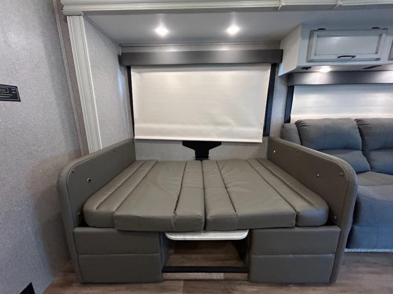 Pack your bags and head to the coast in this spacious motorhome. You'll find two slides throughout for added space, and a sleeping capacity of seven so the grandkids can come along. Relax on the tri-fold sofa or play a game at the booth dinette while the chef of the family prepares a meal. The residential-size microwave will be great for quick meals, and the Furrion all-in-one cooktop oven can be used for casseroles. This model includes an independent shower with a private toilet and sink right across the hall so two people can freshen up at once. You will feel right at home in the rear bedroom that includes a privacy curtain, a slide out queen bed, dual wardrobes, plus your own LED TV!