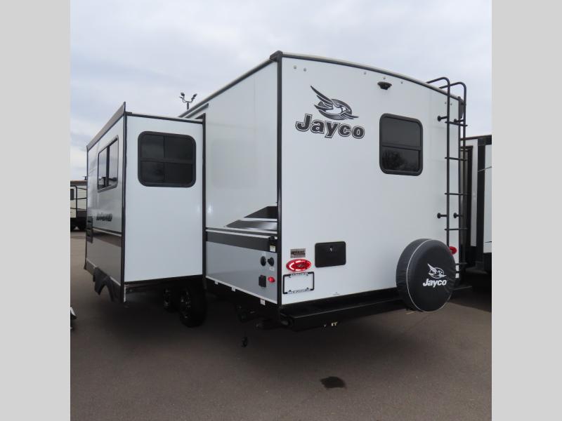 The Jayco Jay Feather travel trailers provide peace of mind with a superior construction process offering Stronghold VBL aluminum-framed vacuum-bonded lamination on every sidewall, rear wall and slide room wall on an American-made Norco frame with an integrated A-frame. Also included are American-made Goodyear tires and Dexter axles with self-adjusting electric brakes and galvanized steel wheel wells, and a 3/4 flush-mount fiberglass cap with blue LED lighting. The Sport Package is mandatory and offers a roof ladder, enhanced graphics package, roof-mount solar prep, and the Glacier package to mention a few features. The interior provides screwed and glued cabinetry, LED lighting throughout, a decorative backsplash and smoked glass decorative inserts on select overhead cabinets for style, plus much more depending on the Jay Feather you choose.