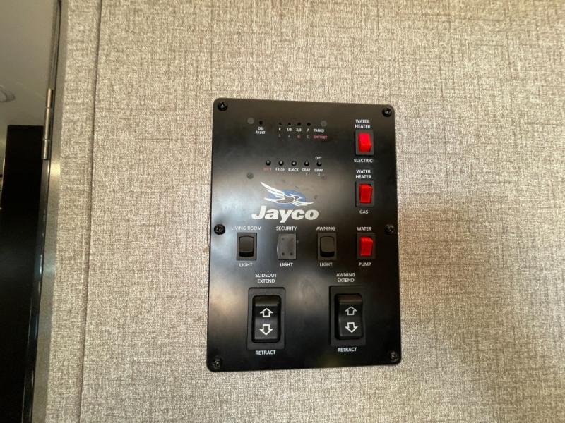 The Jayco Jay Feather travel trailers provide peace of mind with a superior construction process offering Stronghold VBL aluminum-framed vacuum-bonded lamination on every sidewall, rear wall and slide room wall on an American-made Norco frame with an integrated A-frame. Also included are American-made Goodyear tires and Dexter axles with self-adjusting electric brakes and galvanized steel wheel wells, and a 3/4 flush-mount fiberglass cap with blue LED lighting. The Sport Package is mandatory and offers a roof ladder, enhanced graphics package, roof-mount solar prep, and the Glacier package to mention a few features. The interior provides screwed and glued cabinetry, LED lighting throughout, a decorative backsplash and smoked glass decorative inserts on select overhead cabinets for style, plus much more depending on the Jay Feather you choose.