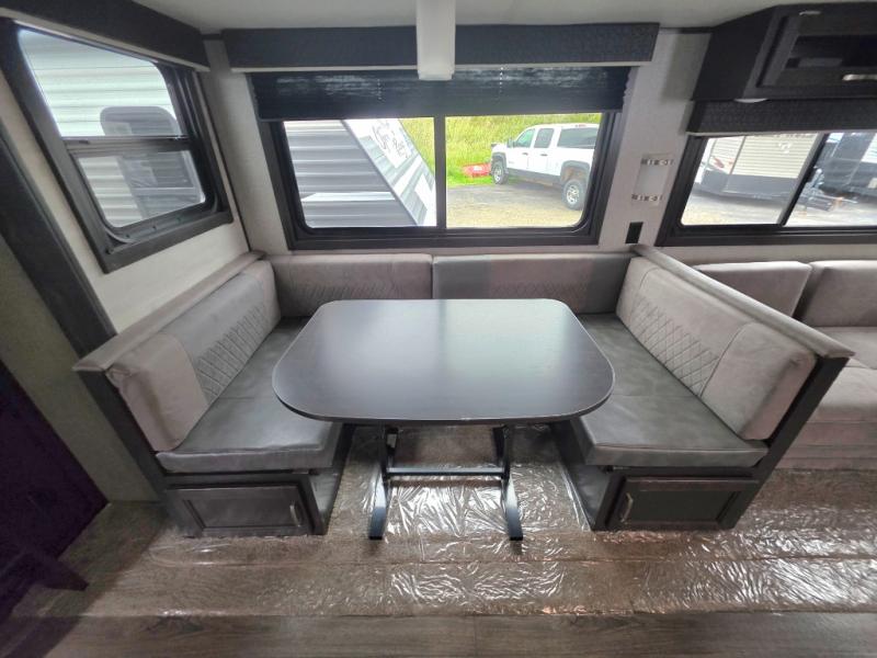Before you set off on the greatest adventure in this Jay Flight travel trailer, you'll want to make sure that you have all of your gear loaded up into the pass-through storage! You will also want to stock up the pantry with your favorite road-trip snacks, and make sure that you have some yogurt and eggs stored in the 8 cubic foot refrigerator. When you finally arrive at the campsite, you'll probably want to take a break after setting up the 18' power awning, so the U-shaped dinette and jackknife sofa will be calling your name. You can even prepare a quick snack before dinner by using the microwave oven.