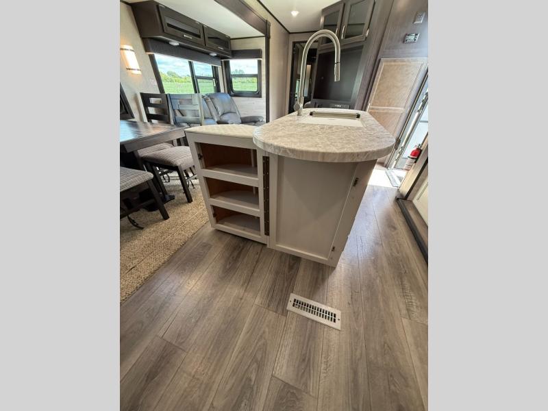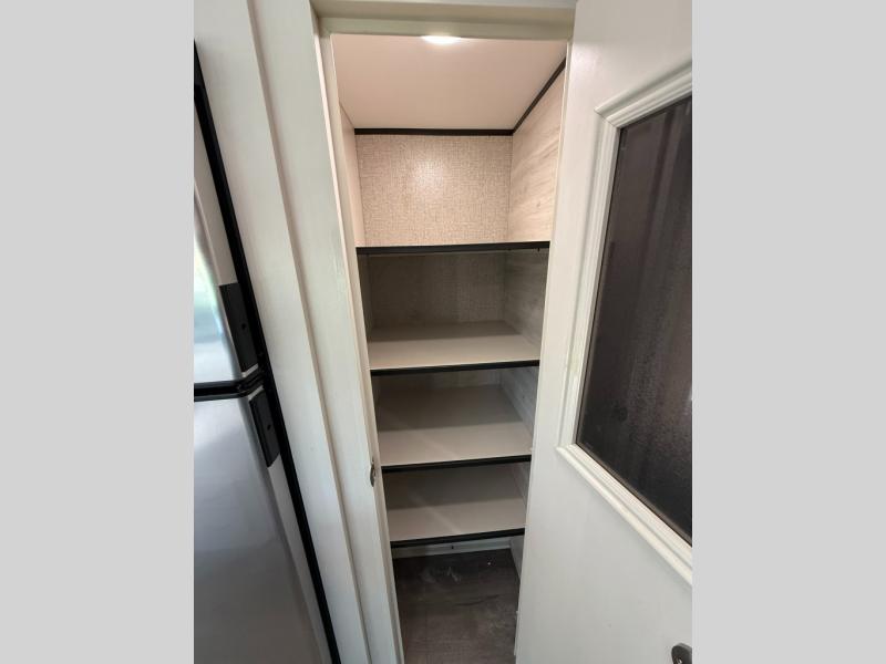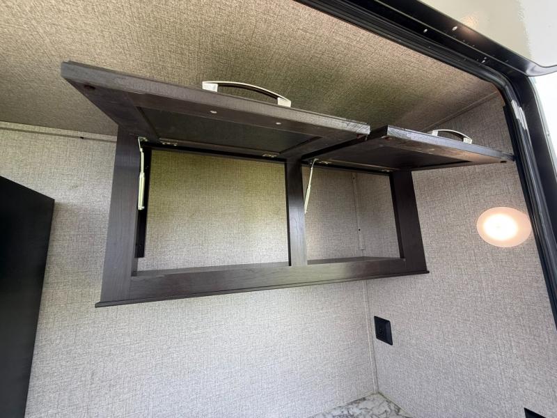Head out on excellent adventures with this Jay Flight travel trailer! This model comes with a great bunkhouse that has a slide out, a dinette, an entertainment center, and storage below one of the bunks. The front private bedroom has a queen-size Serta mattress for your comfort, and there are also wardrobes on either side of the bed for your clothes. Everyone can get cleaned up in the morning by using the radius shower in the full bathroom, and the skylight will keep this space bright and cheerful. While you are outside working at the outdoor kitchen, you will especially appreciate the 20' power awning because it will provide you with shade from the sun.
