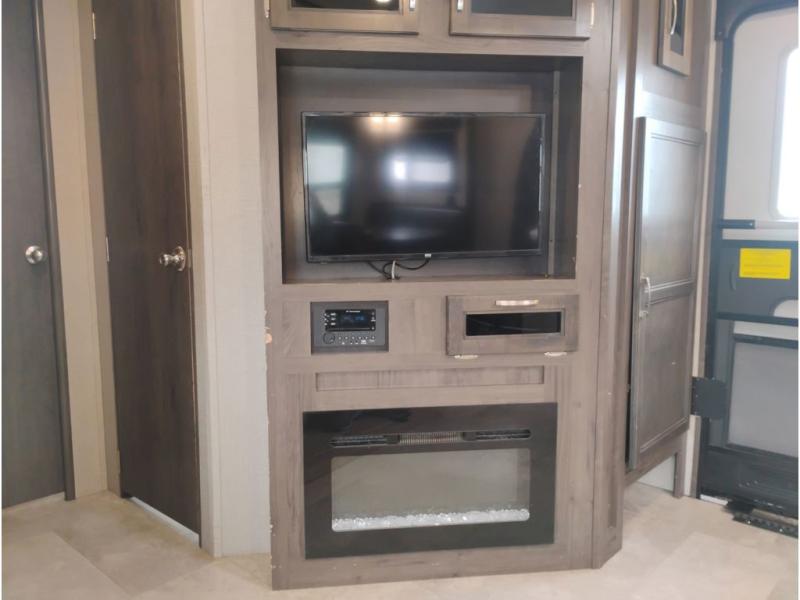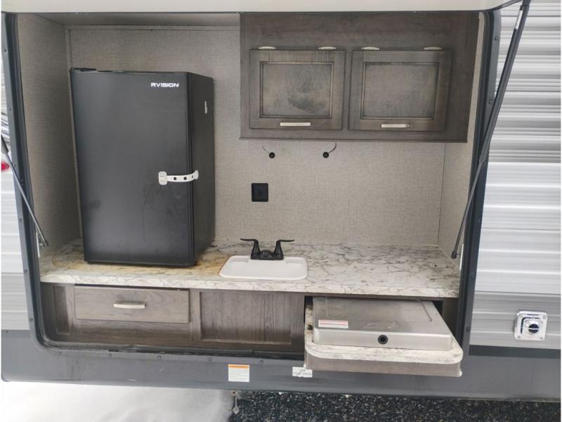 Head out on excellent adventures with this Jay Flight travel trailer! This model comes with a great bunkhouse that has a slide out, a dinette, an entertainment center, and storage below one of the bunks. The front private bedroom has a queen-size Serta mattress for your comfort, and there are also wardrobes on either side of the bed for your clothes. Everyone can get cleaned up in the morning by using the radius shower in the full bathroom, and the skylight will keep this space bright and cheerful. While you are outside working at the outdoor kitchen, you will especially appreciate the 20' power awning because it will provide you with shade from the sun.