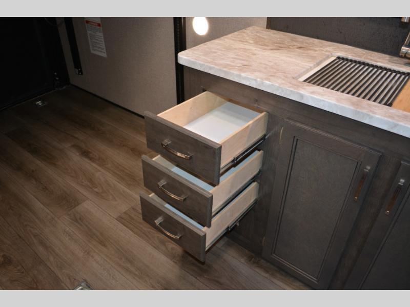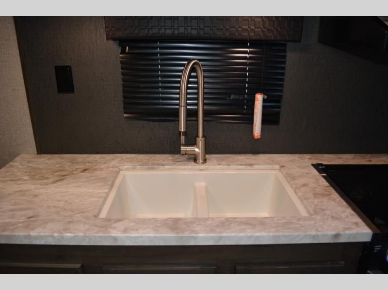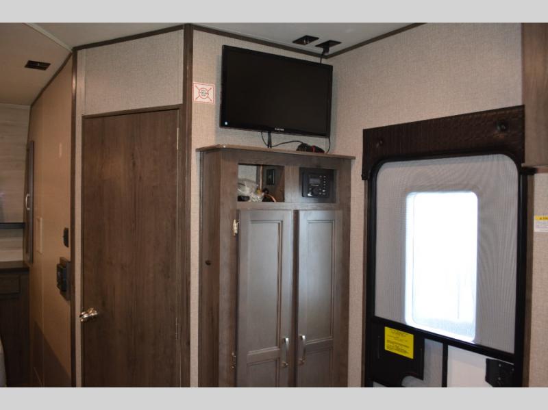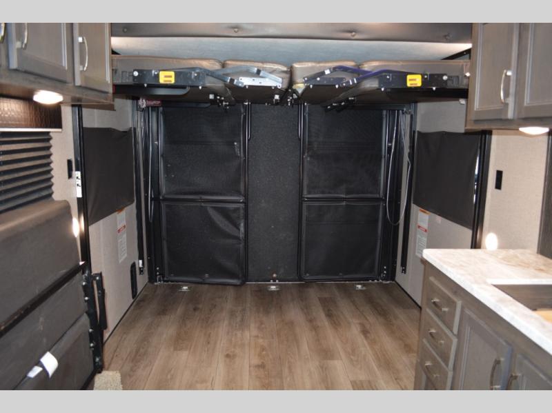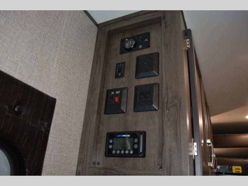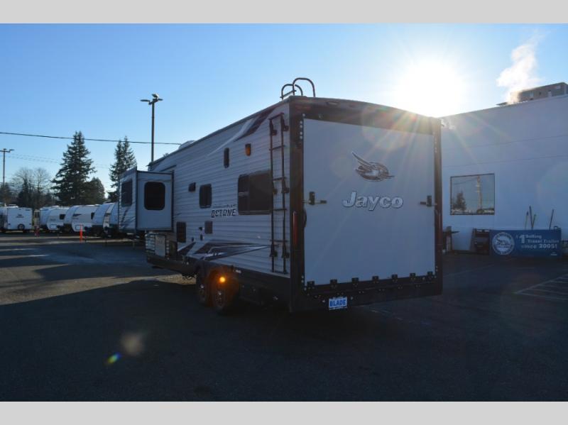 With each Jay Flight Octane toy hauler by Jayco, you will appreciate the 102" wide-body construction that will allow you to bring along your favorite ride-on toys. The Magnum Truss roof system is one of the strongest roofs in the industry, and the heated, enclosed underbelly will help extend your camping season. The high-intensity rear ramp lights and spring-assist ramp door will make unloading a breeze, allowing you get to the fun faster. Head inside to find pleated night shades, vinyl flooring throughout, a deep double-bowl, 50/50 sink with a cutting board and a cover, plus an 8-cu. ft. double-door refrigerator for all your perishables. These toy haulers also include electric self-adjusting brakes and four stabilizer jacks for easy set-up, plus the generator prep and roof mounted solar prep allow you to maximize your camping experience if you choose to add those options.