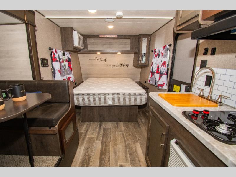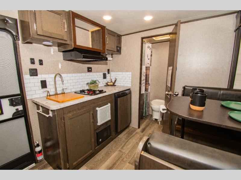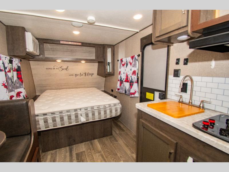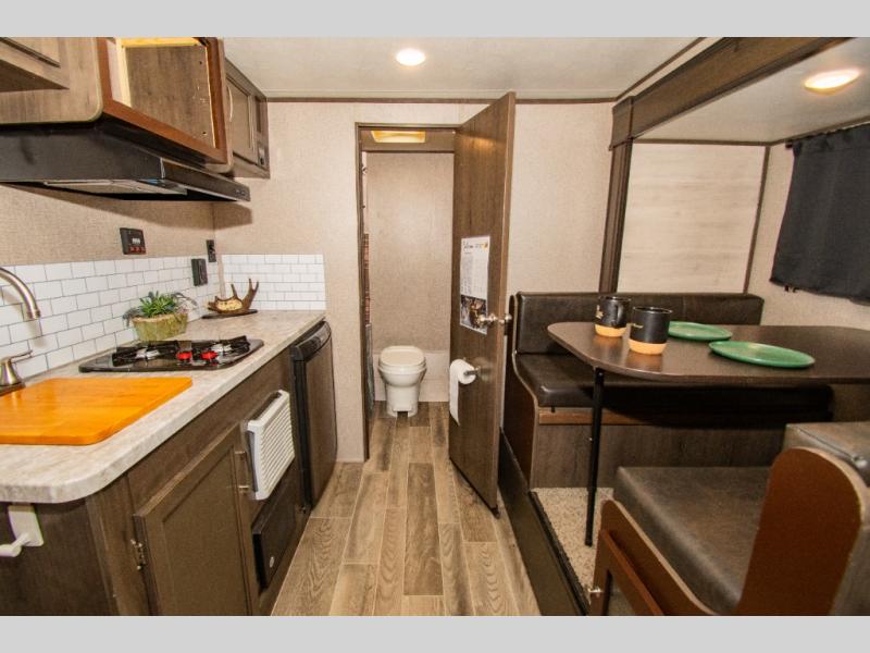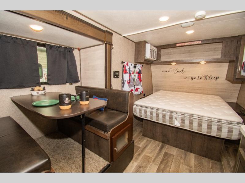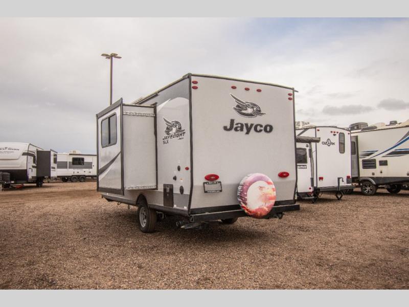 Load up and head out to your favorite local park in this Jay Flight SLX 7 travel trailer. The chef of the family will have more space to cook a meal thanks to the slide out, and the full rear bath will add privacy if someone needs it. You and your spouse will feel right at home on the front RV queen bed that includes a privacy curtain, and an overnight guest or two children can sleep on the booth dinette. This model also includes outside storage for your tool box and yard games plus a 10' power awning with LED lights so that you can play a game of cards in the evening at the picnic table!