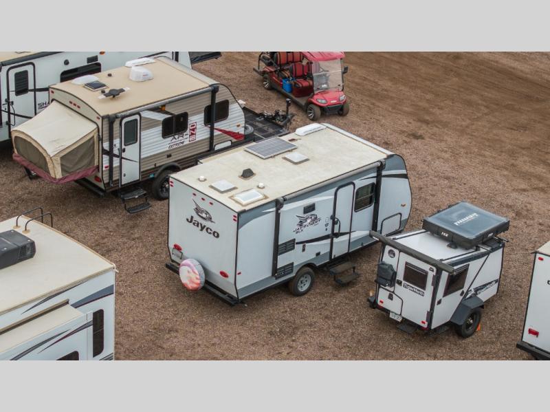 You can't go wrong with a Jay Flight SLX 7 travel trailer by Jayco. These lightweight 7'-wide models feature a fully integrated A-frame, stabilizer jacks with two sand pads, plus a Magnum Truss roof system with seamless DiFlex II material for a strong, sturdy unit made to last. Each model includes brushed nickel faucets, pleated window shades, a bath skylight, plus a premium multimedia sound system with MP3/iPod input jacks and Bluetooth connectivity for your entertainment needs. These travel trailers also include Goodyear Endurance tires that are made in the USA, a front diamond plate, and a power awning with LED lights that will create an outdoor living space you are sure to love!