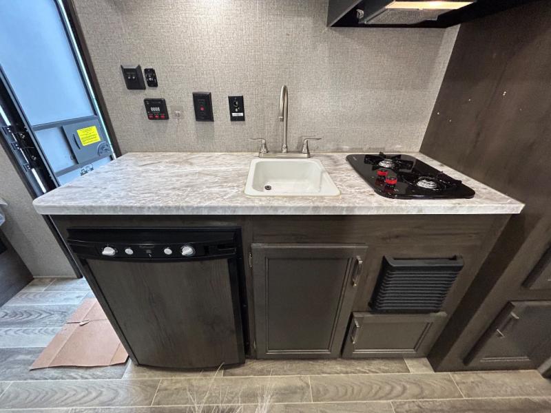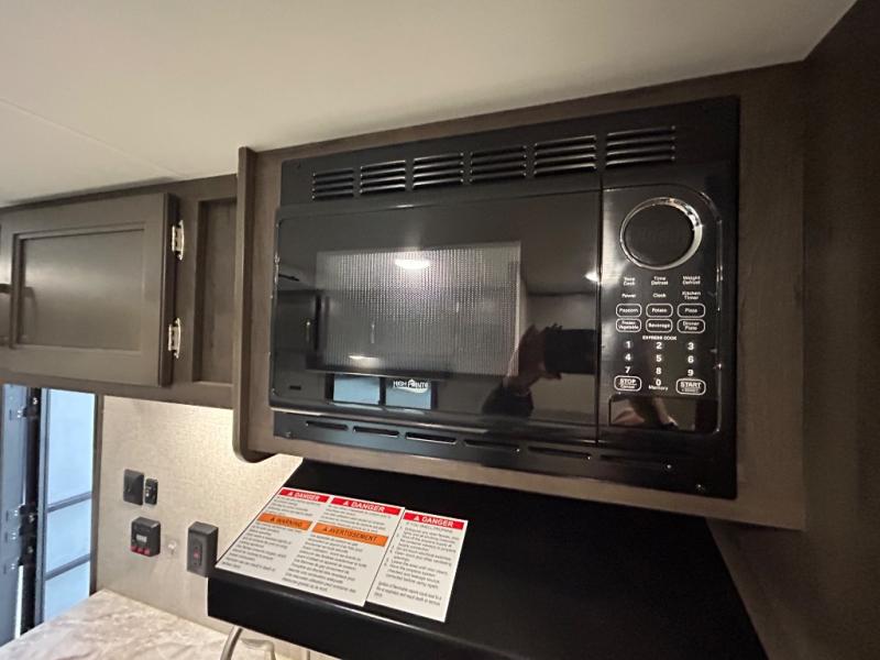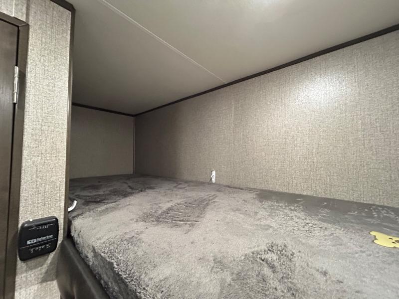 Bunk beds for the kids plus a queen bed for mom and dad make this Jay Flight SLX 7 travel trailer the perfect family unit! Whip up eggs and bacon on the two-burner cooktop, and everyone can dine at the booth dinette. If the weather is nice, you may want to take your plate to sit under the 10' power awning instead. After breakfast, grab your tackle boxes from the outside storage compartment, and then head to the river for some fun. The private bathroom will allow everyone to clean up once you return. This model also includes a pantry for storage plus overhead compartments for your special belongings.