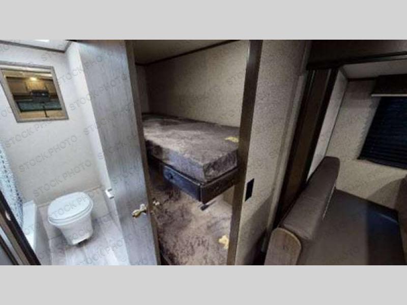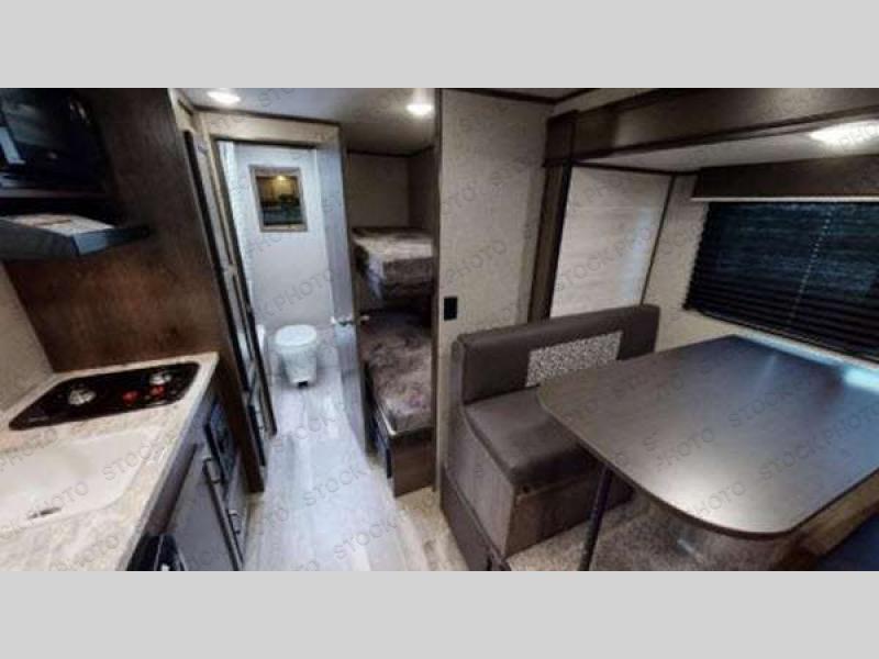This Jay Flight SLX 7 travel trailer is similar to model 174BH, but it includes a slide out for more interior space. The bunk beds include 4"-thick bunk mats for comfort, and the front queen bed includes a privacy curtain for your own space. Easily prepare your meals on the two-burner cooktop, or use the convenient microwave oven. This mode includes a private bathroom so that you don't have to use the camp's facilities, plus you'll find plenty of storage, including overhead compartments, a pantry, and outside storage!
