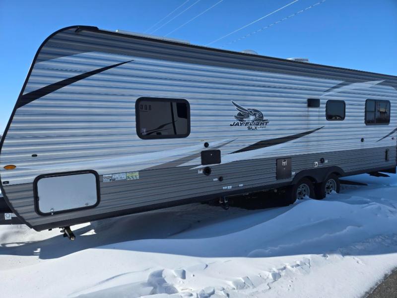 Enjoy family time with lots of room to stretch out in any one of these Jayco Jay Flight SLX 8 toy haulers! Jayco uses the top-quality materials and innovative manufacturing techniques to create the Magnum Truss Roof System for a 50% stronger roof than any other in the industry. The screwed construction creates a more firmly secured structure and the 2" x 2" vertical studs provide smoother edges for safer wiring to reduce the risk of electrical shorts. Each model comes with the mandatory Customer Value Package which includes extra luxurious features like the three burner range, Keyed-Alike™ entry and baggage doors, the outside shower, the JaySMART™ LED lighting, and the bedspread. The Goodyear® Endurance® tires, the front diamond plate, and the axles with electric, self adjusting brakes and galvanized steel impact resistant wheel wells ensure you will arrive safely to each destination. Come see just how comfortable these toy haulers are!