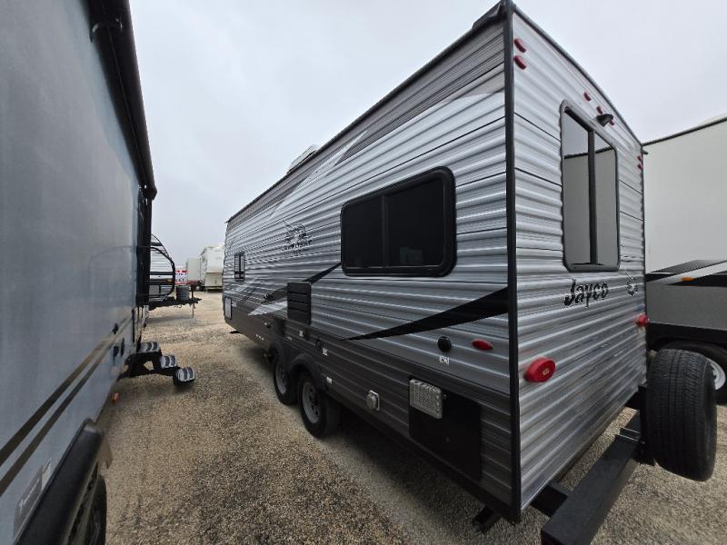 Navigate the rocky terrain of the western part of the country with the Jayco Jay Flight SLX Western Edition travel trailer! These trailers have been built to accommodate the nuances found within the western landscape. Built with a fully integrated A-frame, a Magnum Truss roof system, electric self-adjusting brakes, and Goodyear Endurance tires, the Jay Flight SLX Western Edition is ready to tackle your adventures. Some other features that you will find especially helpful throughout your journeys are the power awning with LED lights and speakers, the front diamond plate, the Keyed-Alike entry and baggage doors, and the patent-pending JaySMART LED lighting.