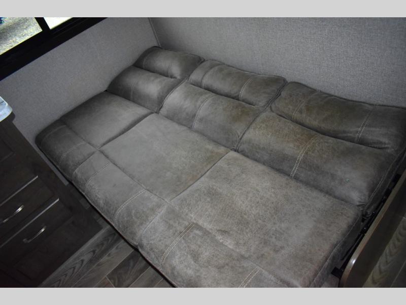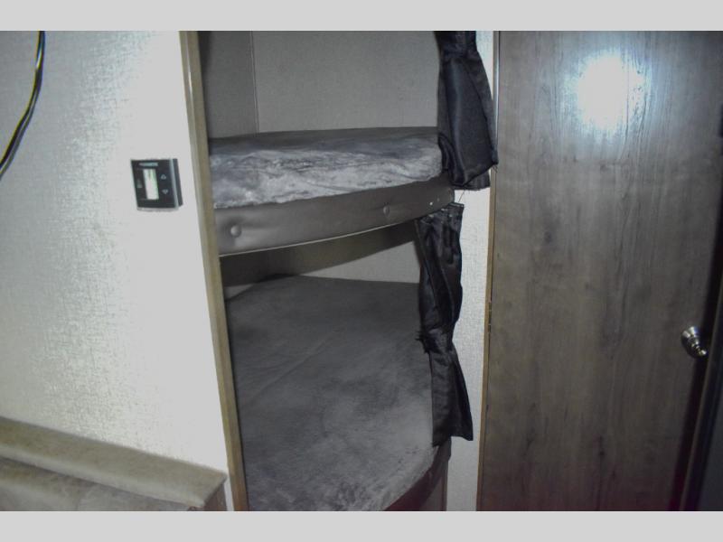 You and your family will love staying in this Jay Flight SLX Western Edition travel trailer! This trailer has lots to offer, like a private bathroom with a sink just outside the door, a set of double-size bunks with a privacy curtain, a full kitchen with a three-burner range and oven, a semi-private bedroom with a walk-around queen bed, and a jackknife sofa and booth dinette for lounging. This trailer also has ample storage space with the two bedside wardrobes and the exterior pass-through storage, and you even have the ability to add an optional exterior Chil N' Stor refrigerator.