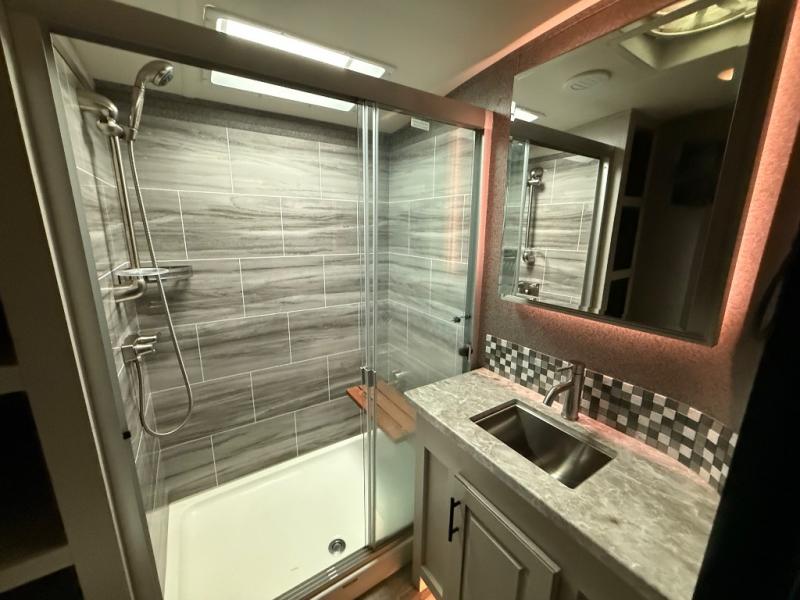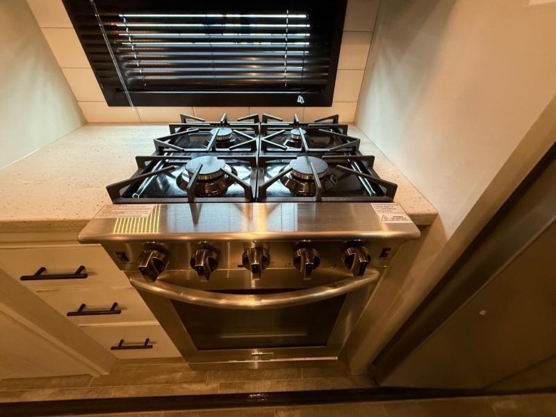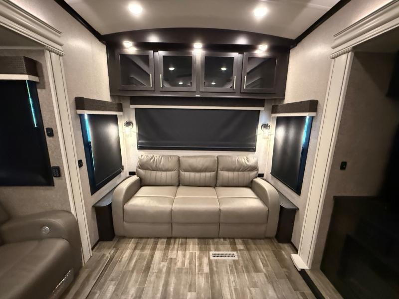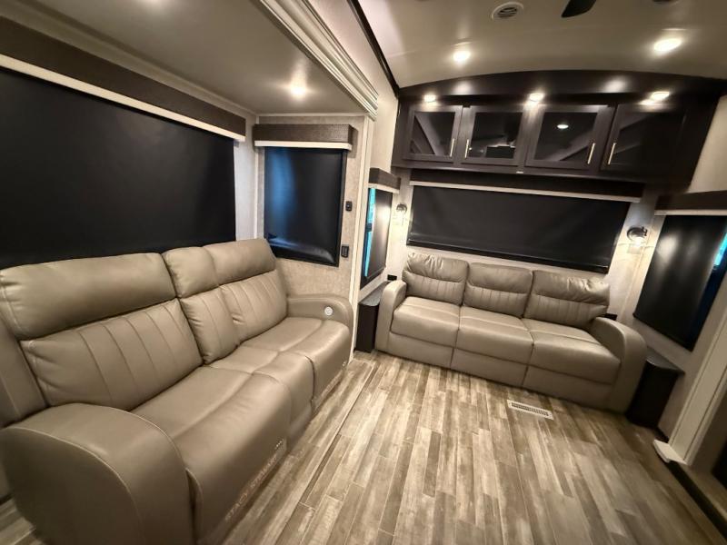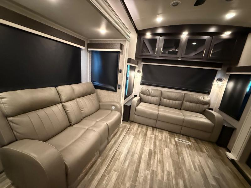 Top it off with solid construction, Jayco’s renowned quality, and features like the Climate Shield for four-season travel, and you’ve got a luxury fifth wheel that’s ready for year-round adventures.