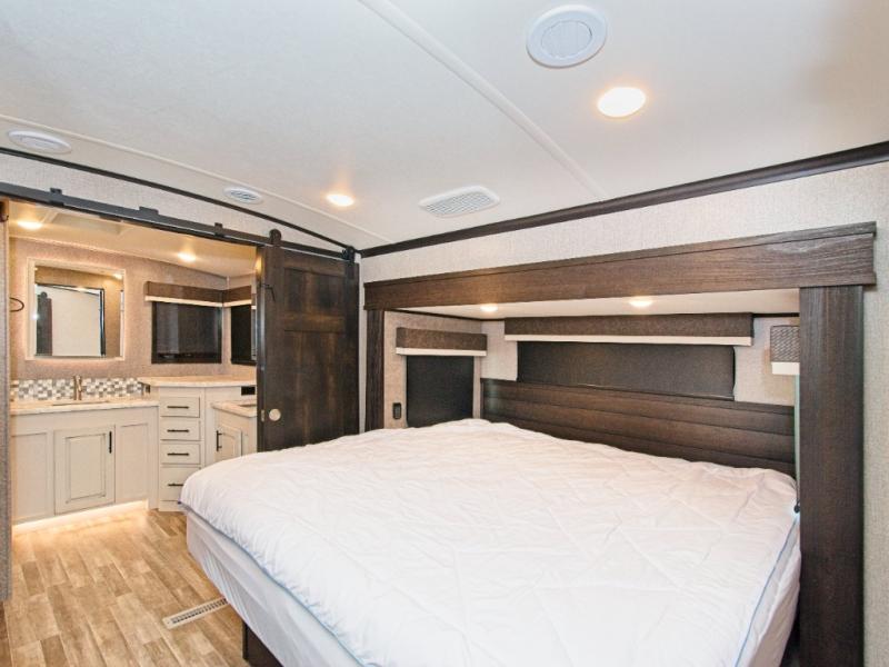 Retreat to the rear of the RV for pure comfort with: