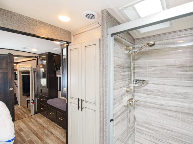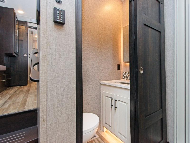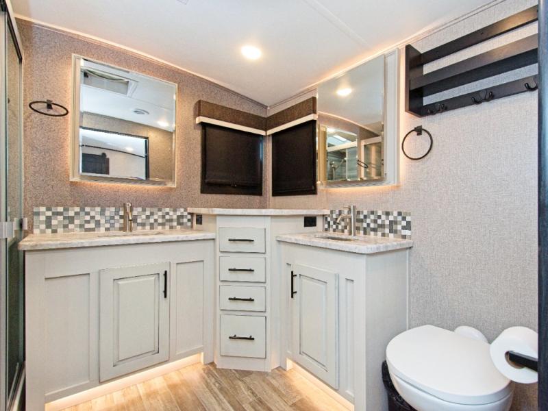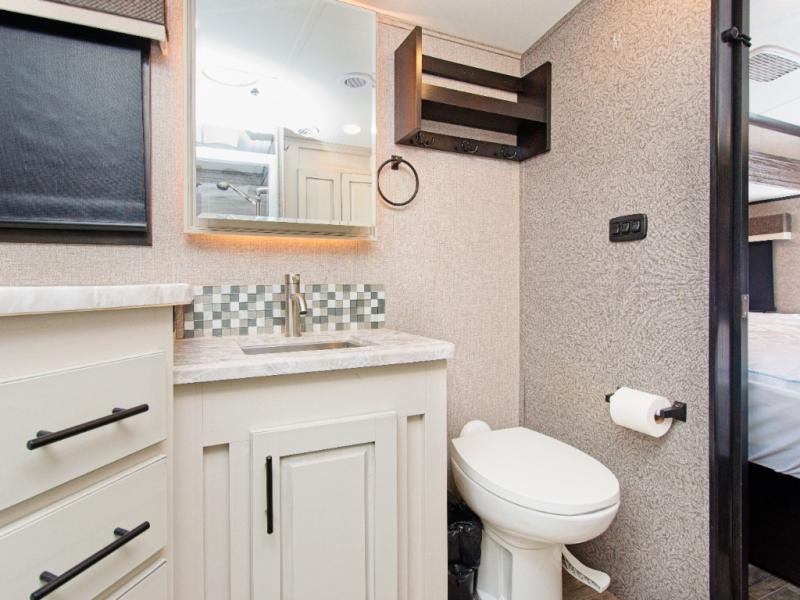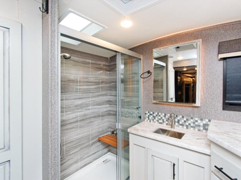 This rear bathroom provides a luxurious, residential feel that makes every trip more enjoyable.
