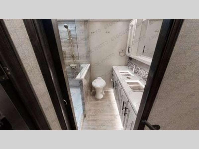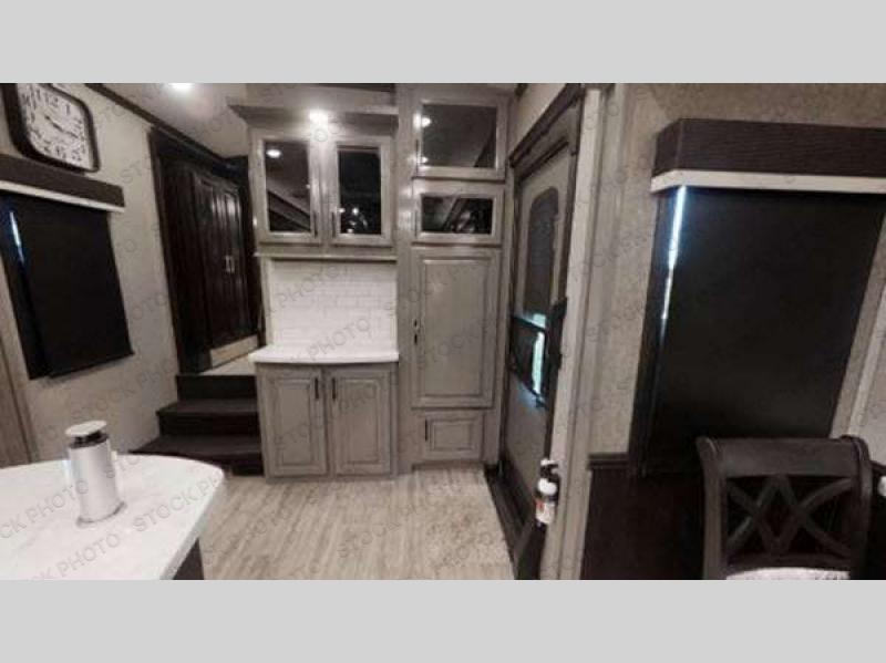 Pack your bags and head to your local state park for a fun family vacation in this fifth wheel. The chef of the family will love cooking in the spacious kitchen with a full pantry and a hutch for your nice dishes. You can also choose to add an optional dishwasher to make clean-up easier than ever. This model includes a full bath with dual bath sinks and a walk-in shower with a seat for your comfort. The front private bedroom will feel just like home with its slide out king bed, a front lounge seat, plus your own fireplace for a cozy evening indoors.