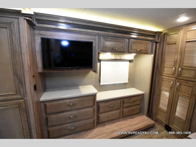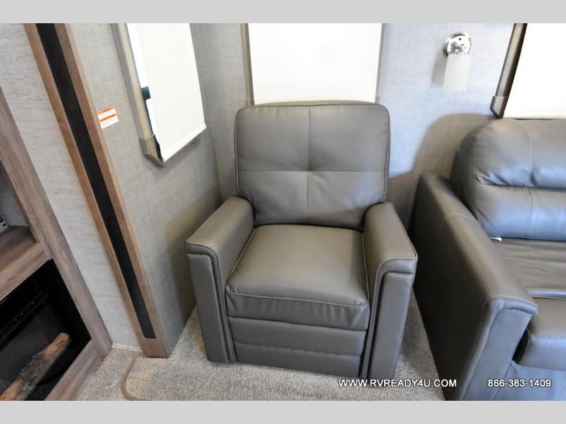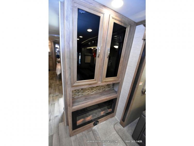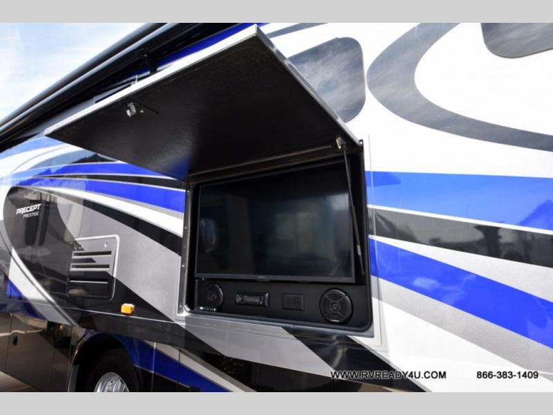 Pack your bags and load up into this Precept Prestige Class A gas motorhome for a relaxing getaway! The rear private bedroom has a king-size bed for you to rest up each night and a wardrobe with a space to add the optional washer and dryer so that you can have clean clothes throughout your entire trip. You can prepare delicious home-cooked meals with the Furrion® stainless, recessed gas cooktop with cast-iron grill and even the convection microwave, and then you can enjoy eating those meals at the booth dinette which can also convert into an extra sleeping space. What better way to wind down your nights than by relaxing on the hide-a-bed sofa or the recliner while you enjoy the cozy fireplace and watch your favorite movie on the 50" TV lift!