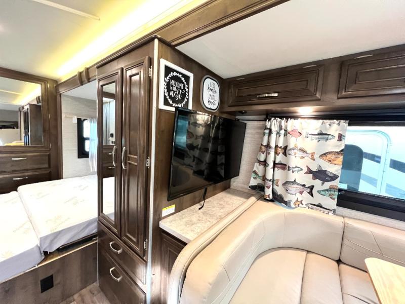 You will want to schedule plenty more vacations as soon as you snatch up the Jayco Redhawk Class C gas motorhome! The JRIDE® system from Jayco is an excellent component that features a computer-balanced driveshaft, standard front and rear stabilizer bars, Hellwig helper springs, and rubber isolation body mounts. This is what provides you with the very best driving experience. The Sony® infotainment center with Apple CarPlay® and Android Auto™ is a great addition to the cab, and the backup camera also adds to the cab's functional abilities. There is a water filtration system and pop-up charging station with 110V outlets and USB ports in the Redhawk, and some other reliable features that you'll find on each model are the interior command center, the Onan 4,000-Watt MicroQuiet generator, the exterior utility center, and the high-output, marine-grade exterior speakers. All in all, the Redhawk delivers one of the best values in its class!