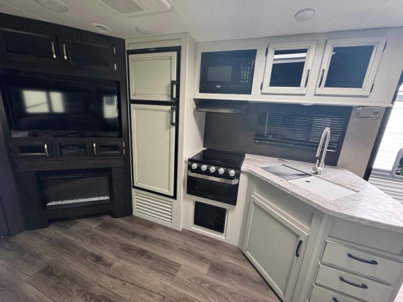 If you're wanting a lightweight travel trailer packed with convenience and luxury then look no further than these Jayco White Hawk travel trailers! Jayco uses the top-quality materials and innovative manufacturing techniques to create the superior StrongholdVBL vacuum-bond lamination, and the Magnum Truss Roof System for a 50% stronger roof than any other in the industry. The screwed construction creates a more firmly secured structure and the 2" x 2" vertical studs provide smoother edges for safer wiring to reduce the risk of electrical shorts. Each model comes with two mandatory packages to include extra luxurious features like the Furrion range, the kitchen skylight, and the outside shower. You will also enjoy the Climate Shield zero-degree tested weather protection, the JAYCOMMAND "Smart RV" system, and the MORryde StepAbove entry steps, plus there is even a roof-mount solar prep. The American-made Goodyear tires and Dexter axles with self adjusting brakes and galvanized steel wheel wells ensure you will arrive safely to each destination. Come explore these lightweight travel trailers today!