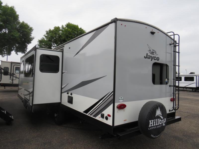 If you're wanting a lightweight travel trailer packed with convenience and luxury then look no further than these Jayco White Hawk travel trailers! Jayco uses the top-quality materials and innovative manufacturing techniques to create the superior StrongholdVBL vacuum-bond lamination, and the Magnum Truss Roof System for a 50% stronger roof than any other in the industry. The screwed construction creates a more firmly secured structure and the 2" x 2" vertical studs provide smoother edges for safer wiring to reduce the risk of electrical shorts. Each model comes with two mandatory packages to include extra luxurious features like the Furrion range, the kitchen skylight, and the outside shower. You will also enjoy the Climate Shield zero-degree tested weather protection, the JAYCOMMAND "Smart RV" system, and the MORryde StepAbove entry steps, plus there is even a roof-mount solar prep. The American-made Goodyear tires and Dexter axles with self adjusting brakes and galvanized steel wheel wells ensure you will arrive safely to each destination. Come explore these lightweight travel trailers today!