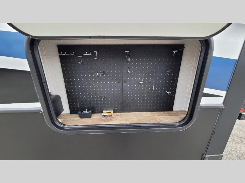 One of the most advantageous features found on this Arcadia Half-Ton fifth wheel is the L-shaped sofa! This industry-first EZ-sit foam sectional sofa is a one-of-a-kind addition that includes power foot rests, and it can convert into a king bed. This sofa also takes movie night to a new level since it sits across from the 40" HD flat screen TV, and you don't even have to leave the area in order to make a snack in the residential microwave because the kitchen is right next to the living area. Up in the private bedroom you will find more than just a queen-size bed: you will also find tons of storage space with the under-bed storage, the wardrobe close to the foot of the bed, and the wardrobe slide. And for storing your outdoor equipment, you will find two XL pass-through baggage doors, Trunk pass-through storage with large clutter-free capacity and tie-down rings.